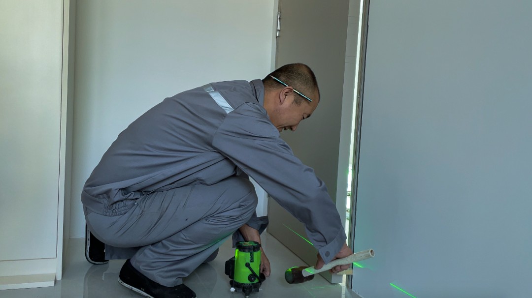 “装门这活儿,看着简单,其实差一点都不行。"他说,很多人以为装门只是固定几颗螺丝,其实背后的工序复杂得很。门的构造、墙体的状态、安装的位置,每一处都需要判断。他常说:"门看着是一块木板,其实它会说话,你得懂它。"