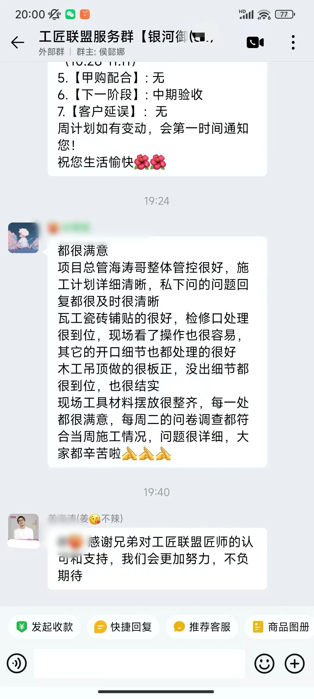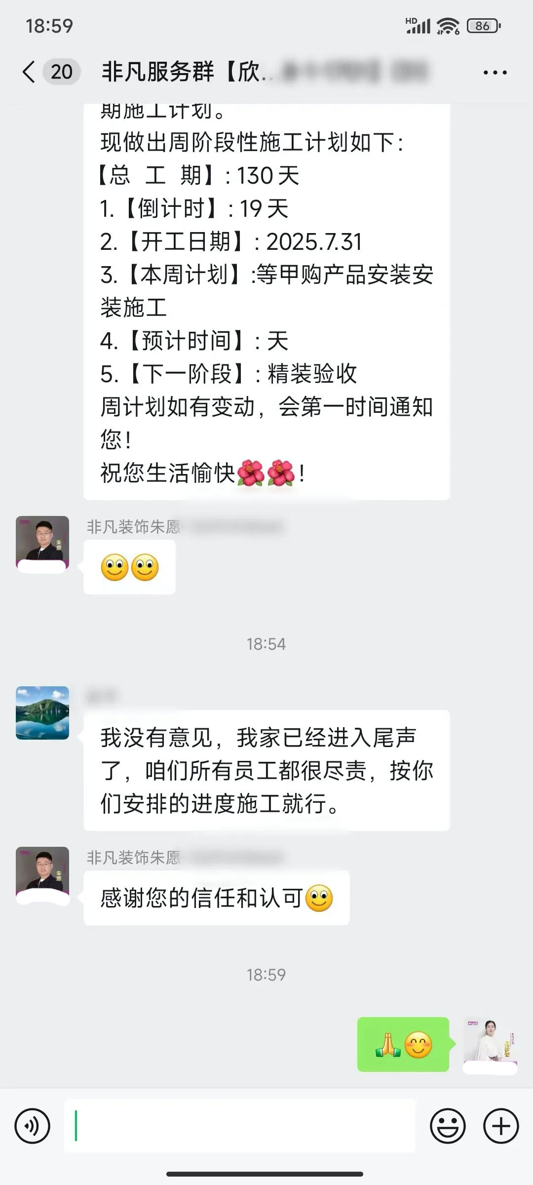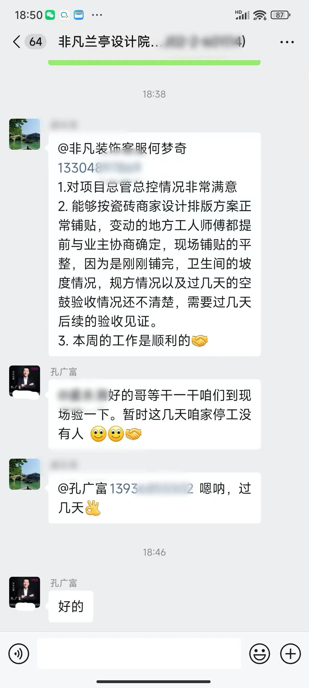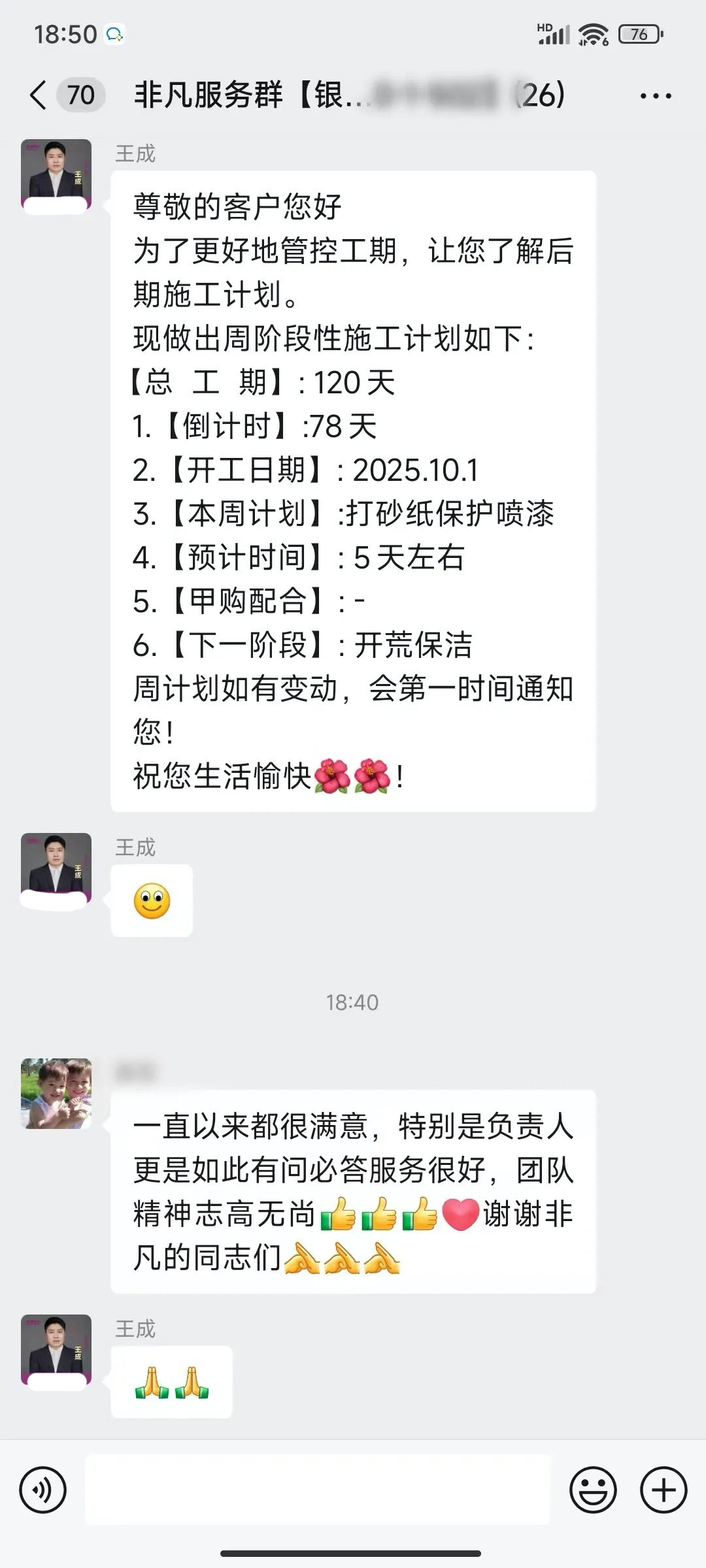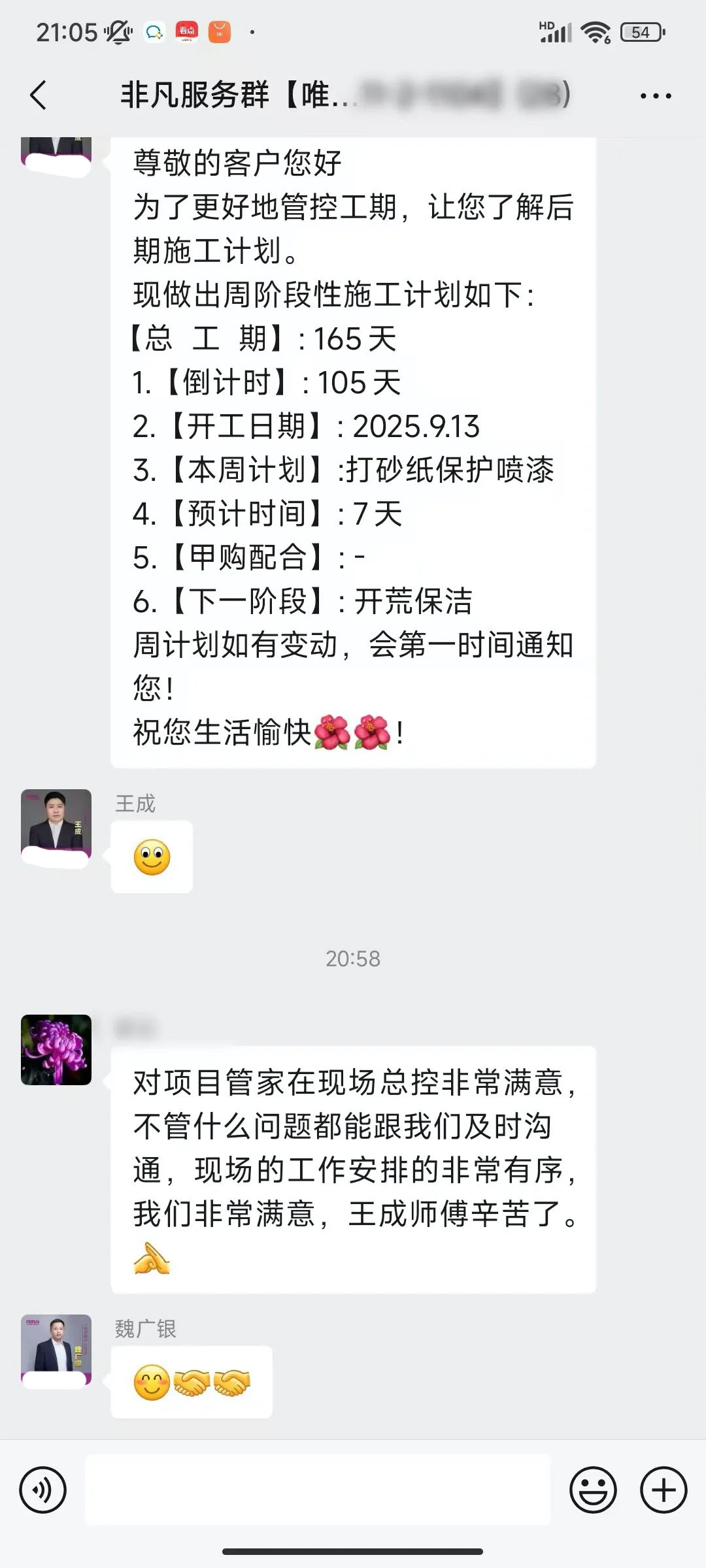 无论是日常进度查询、细节确认,还是突发状况的协调,团队均能实现快速联动与高效处理。这种始终在线、有问必应的服务状态,让业主在忙碌之余也能全程掌握装修动态,收获安心与省心的体验。