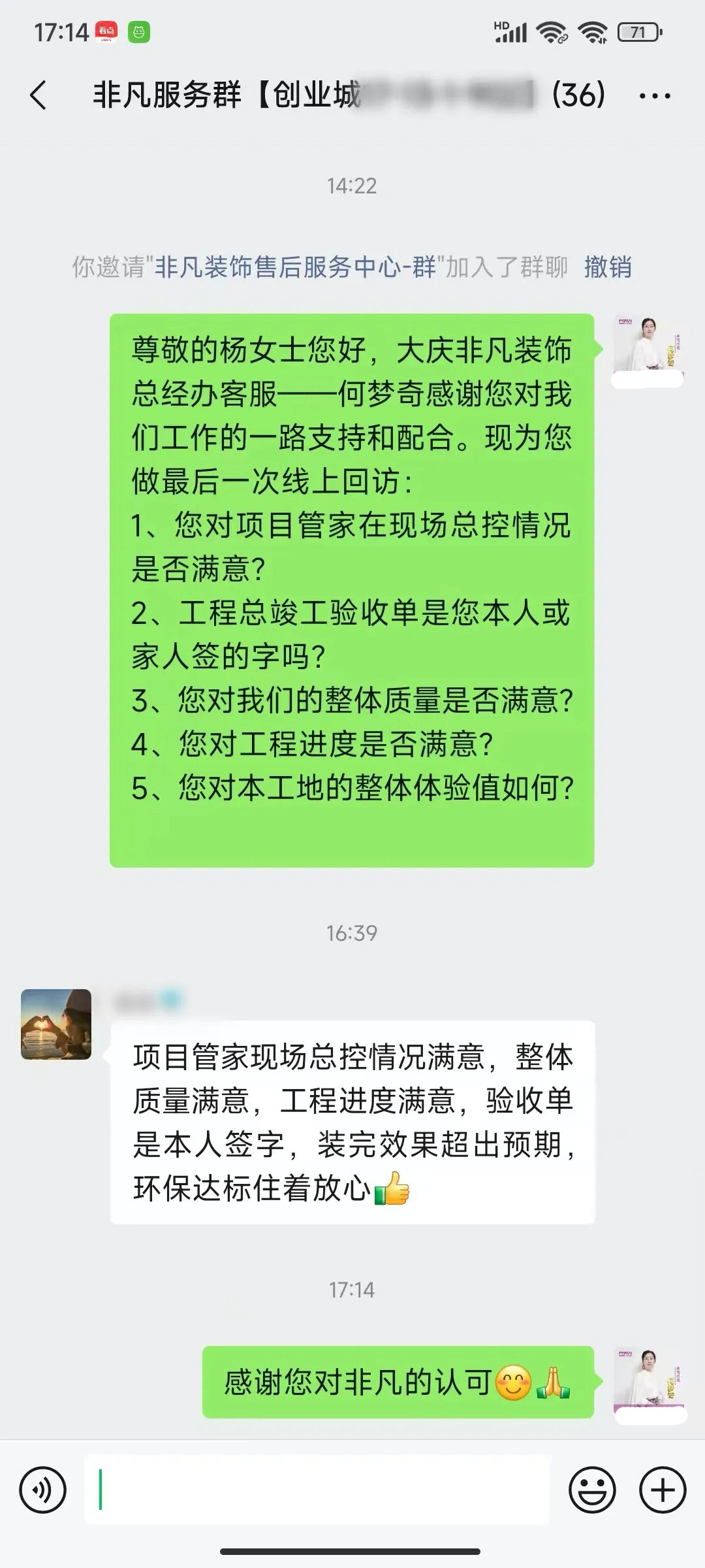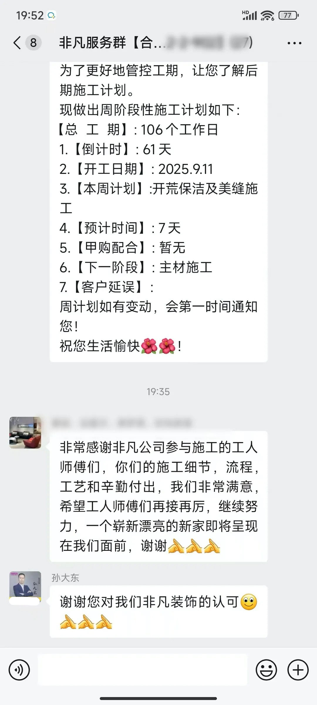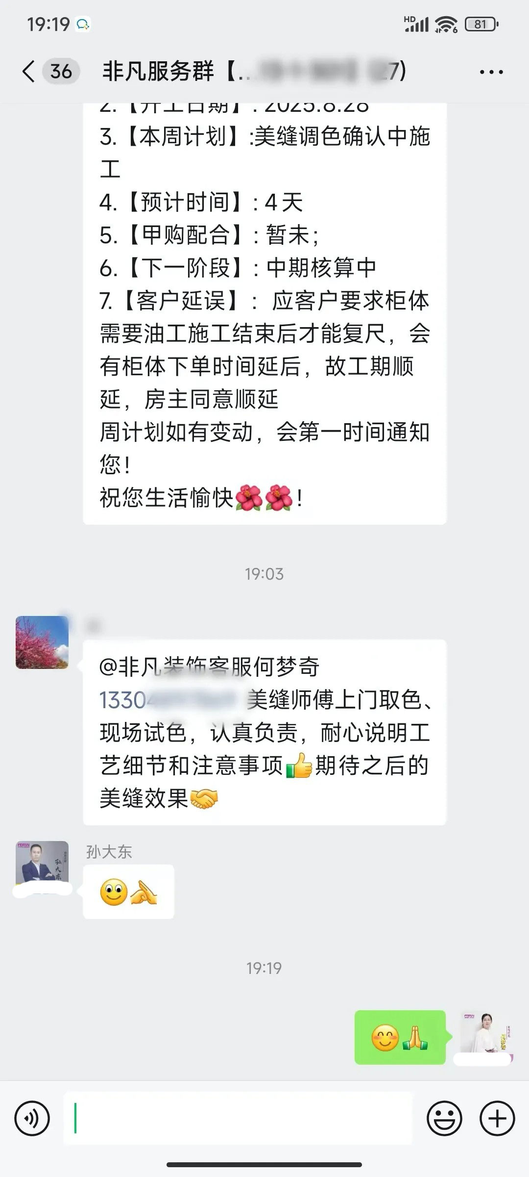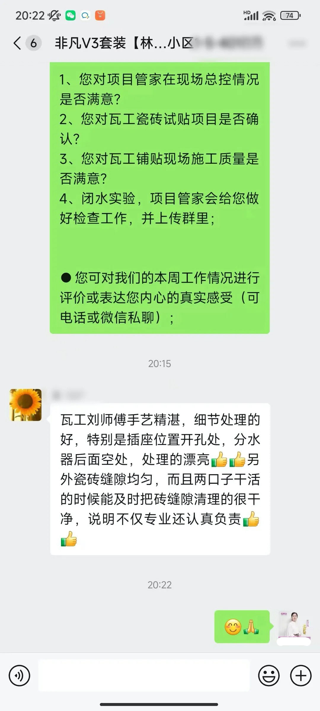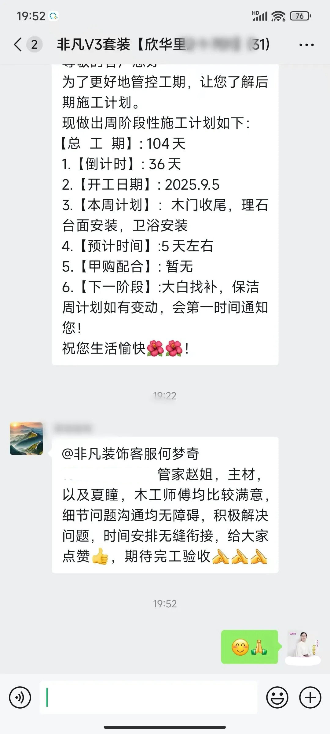 无论是日常进度查询、细节确认,还是突发状况的协调,团队均能实现快速联动与高效处理。这种始终在线、有问必应的服务状态,让业主在忙碌之余也能全程掌握装修动态,收获安心与省心的体验。