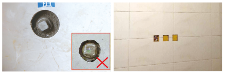 1、瓷砖表面不许有划痕、无裂纹、崩瓷、掉角。