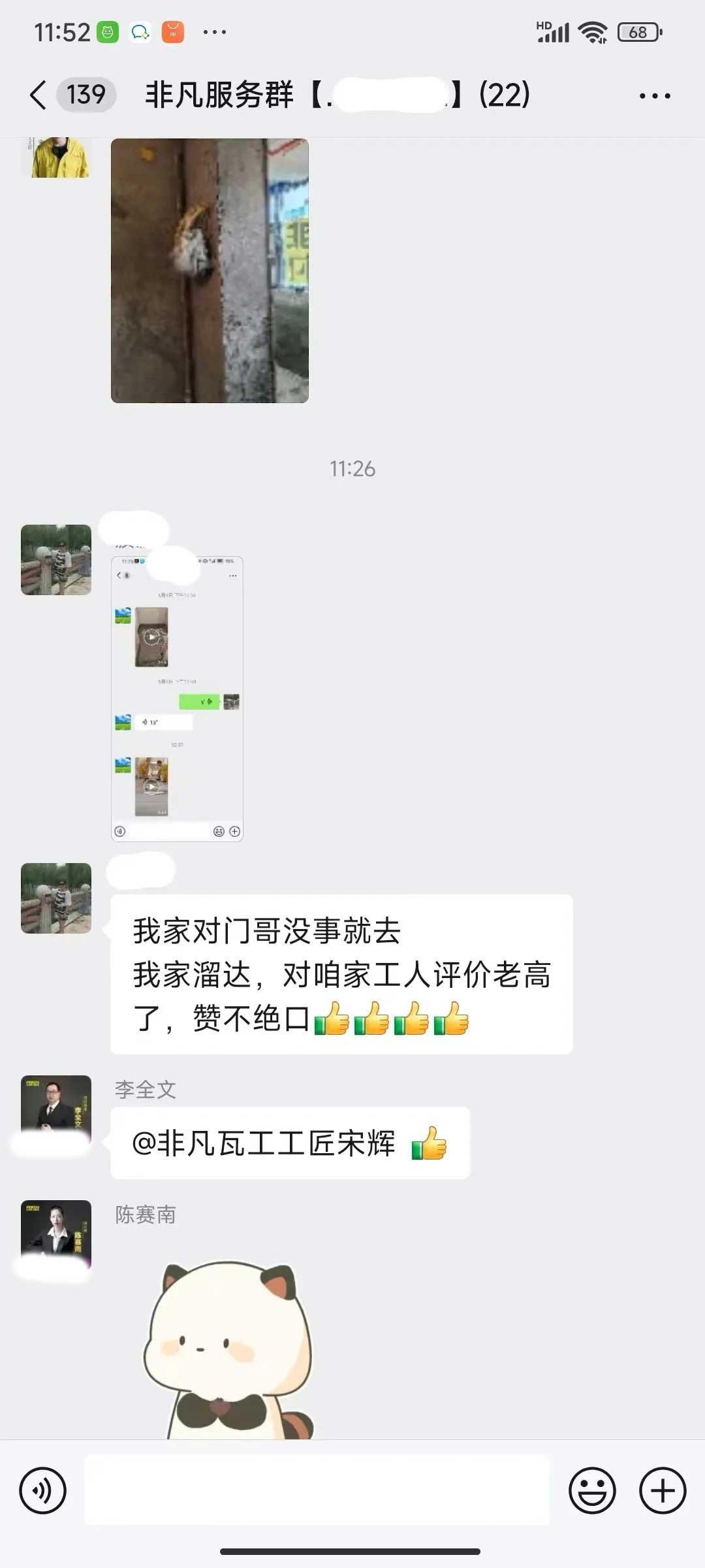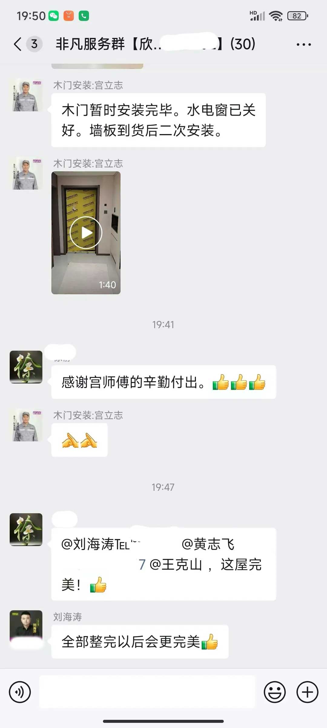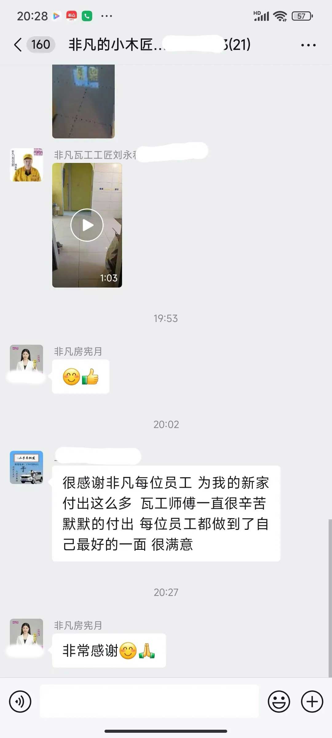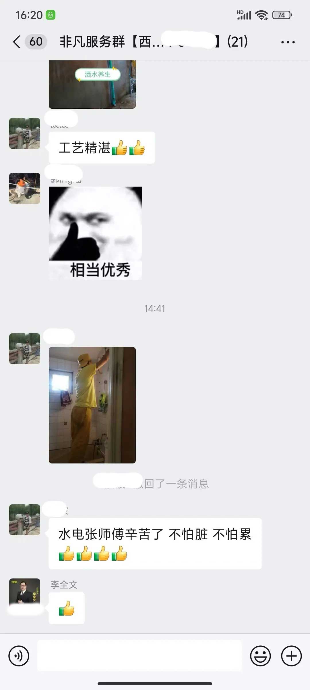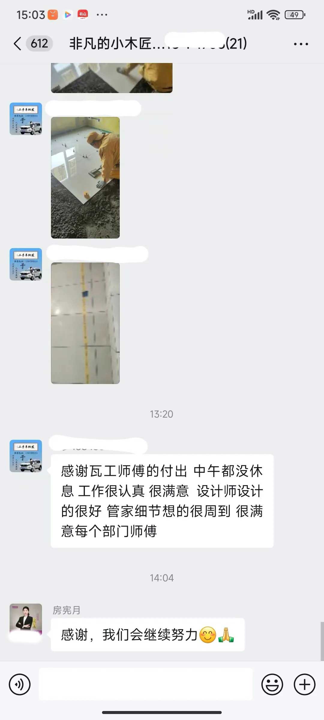 @业主们说:“感谢你为我们新房付出的劳动,祝您今后生活愉快工作顺利”、“每个员工都做到了自己好的一面”、“质量优良,大国工匠”...