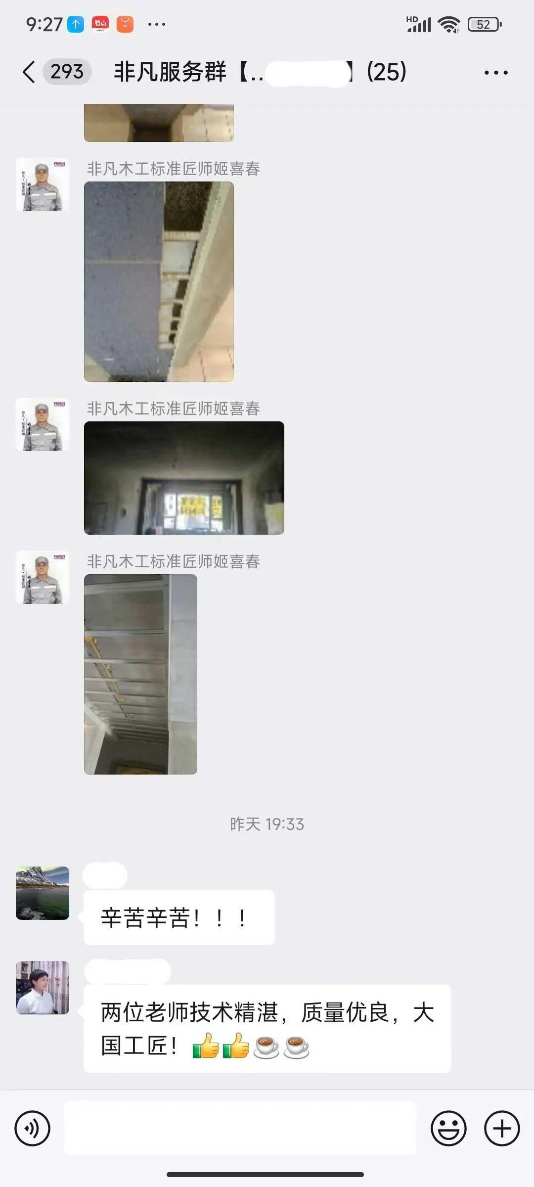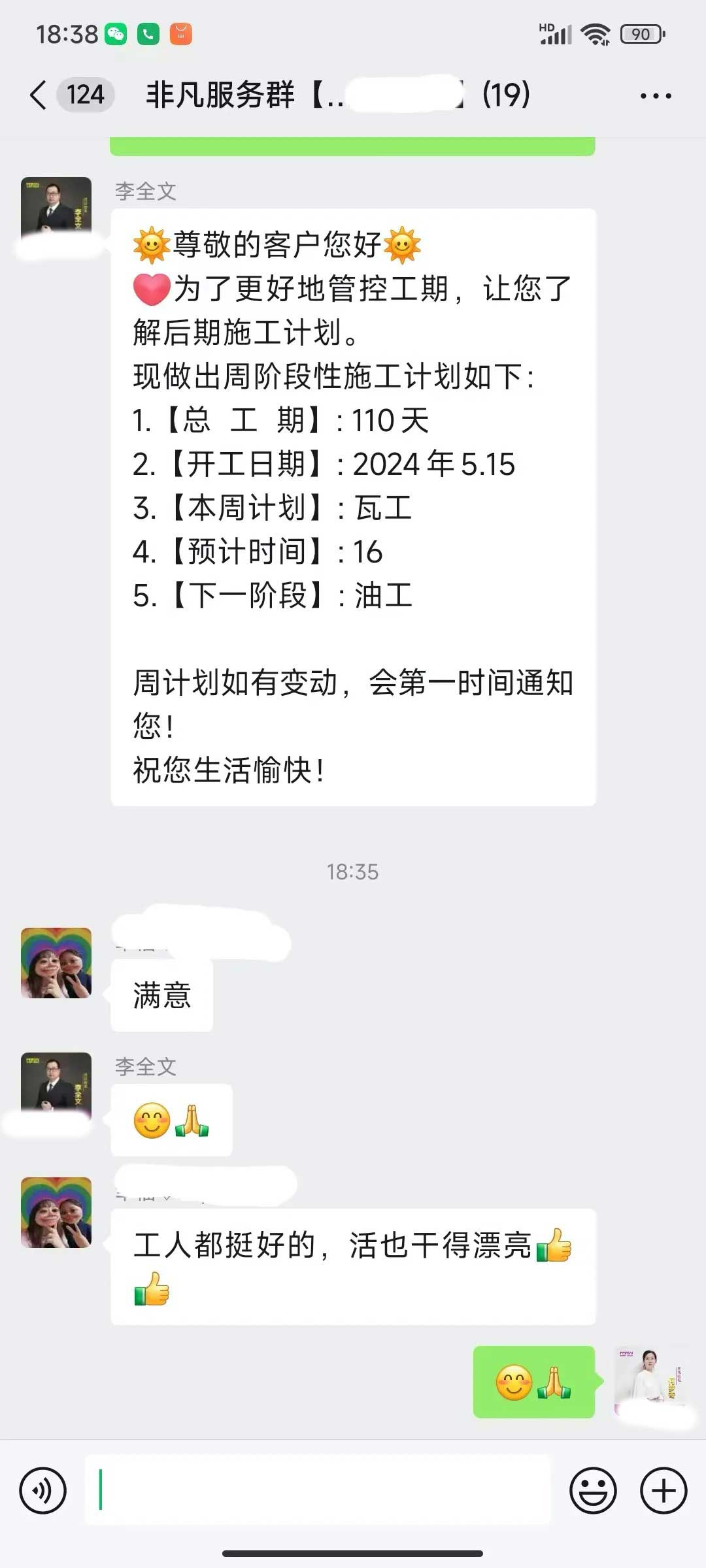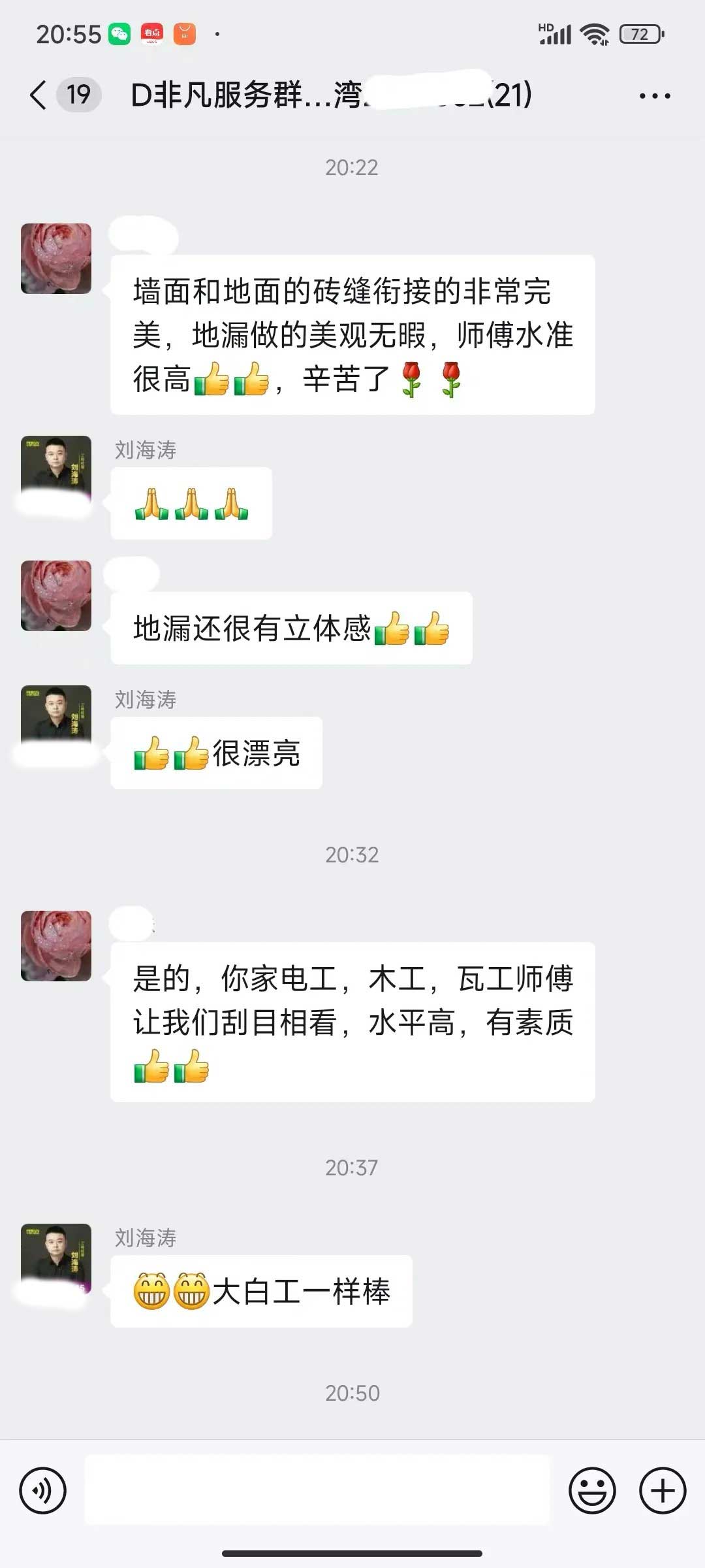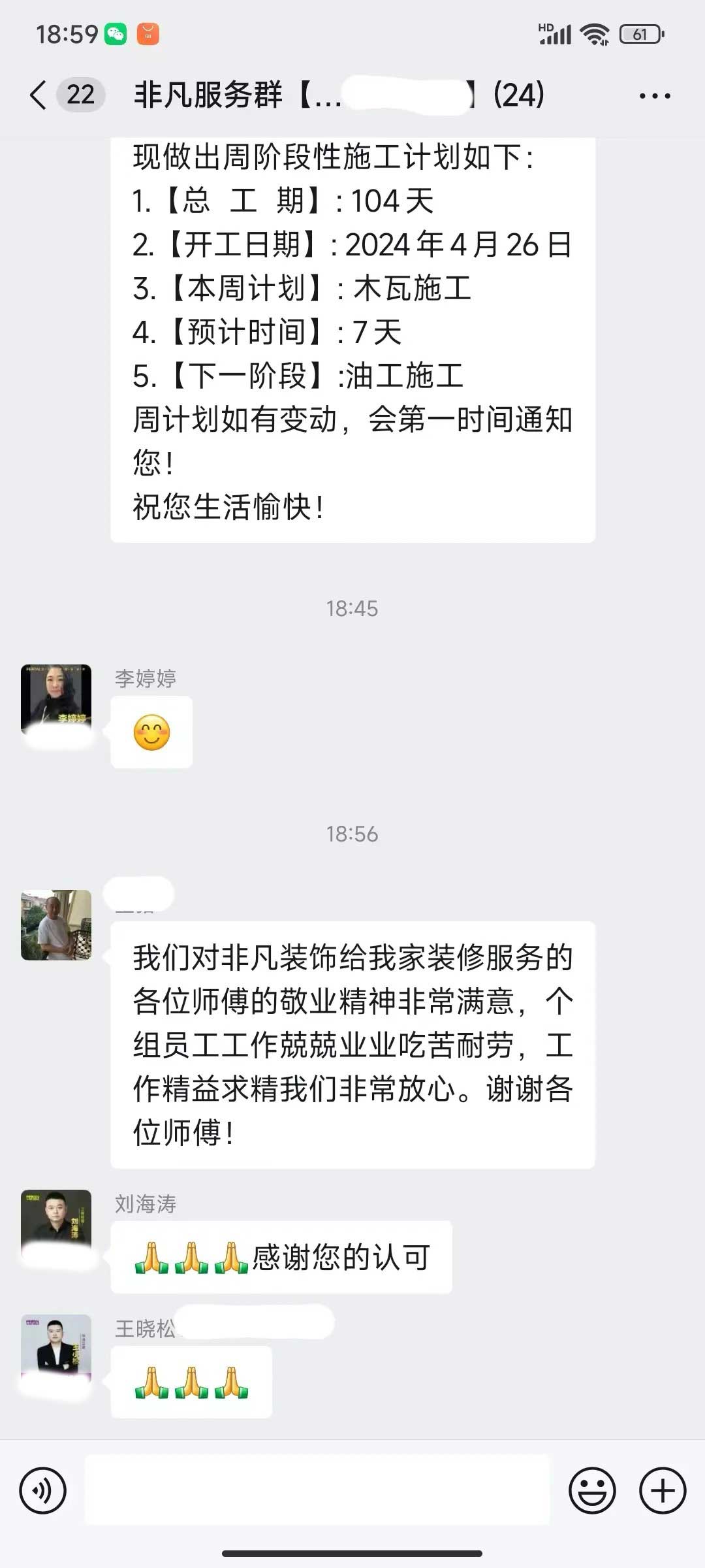 @业主们说:“活干的太好了,赏心悦目!”、“员工工作兢兢业业吃苦耐劳,我们非常放心!”、“态度端正、技术过硬、施工文明、沟通良好”...