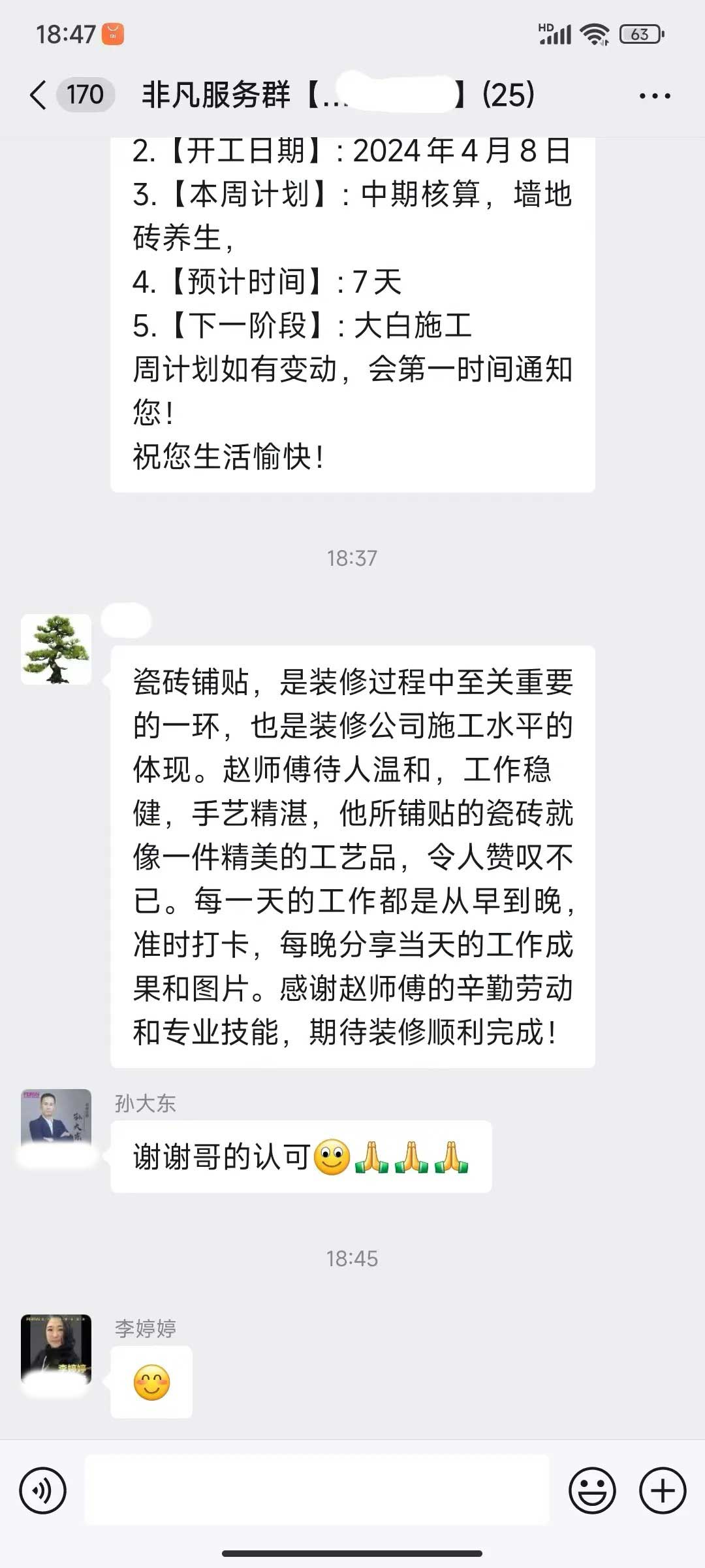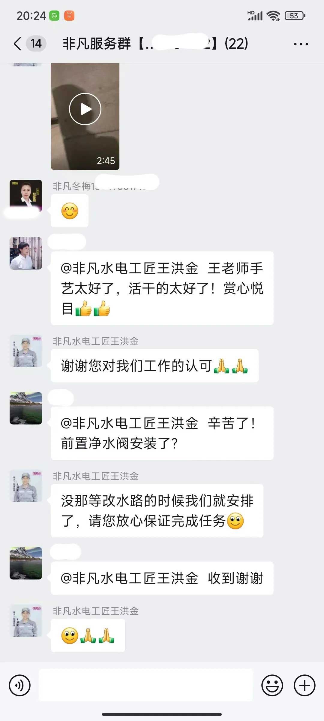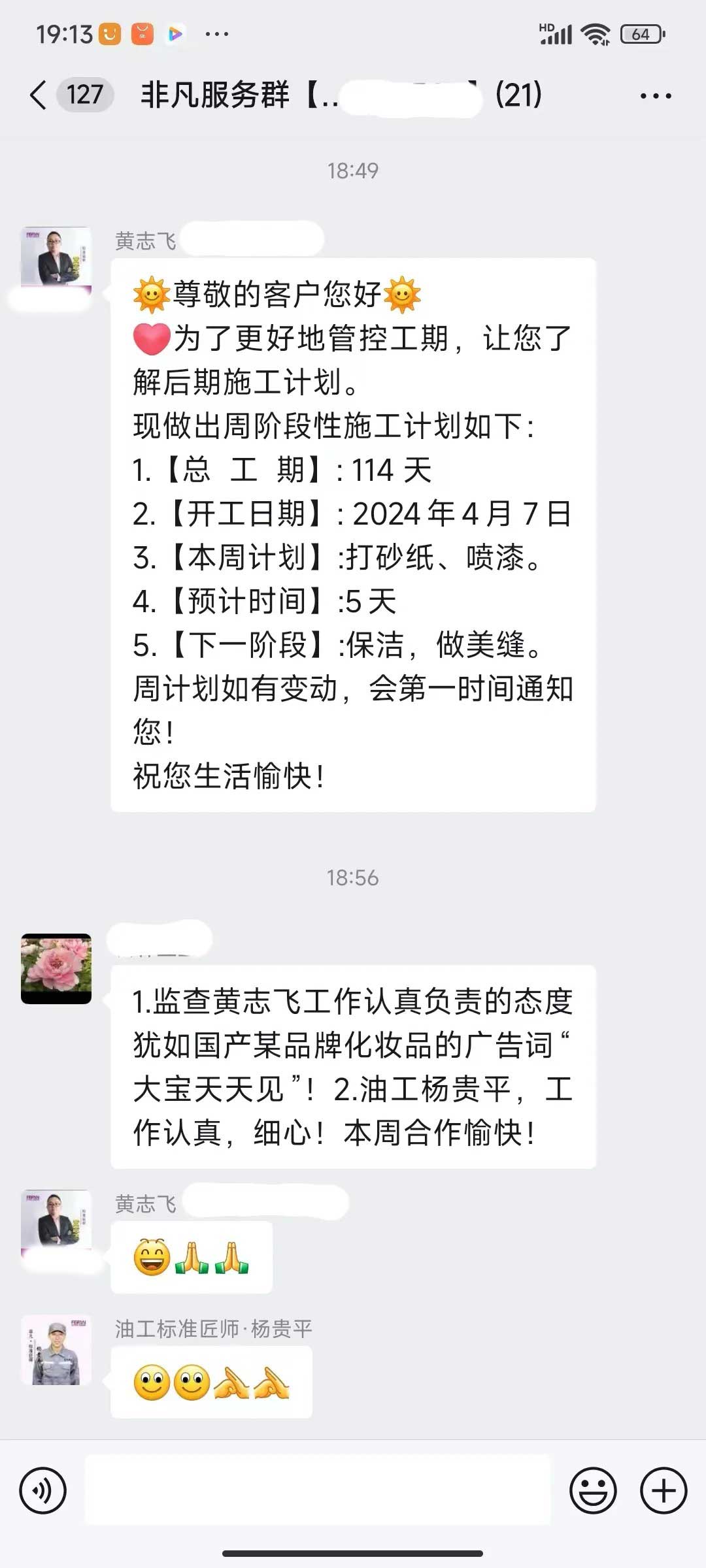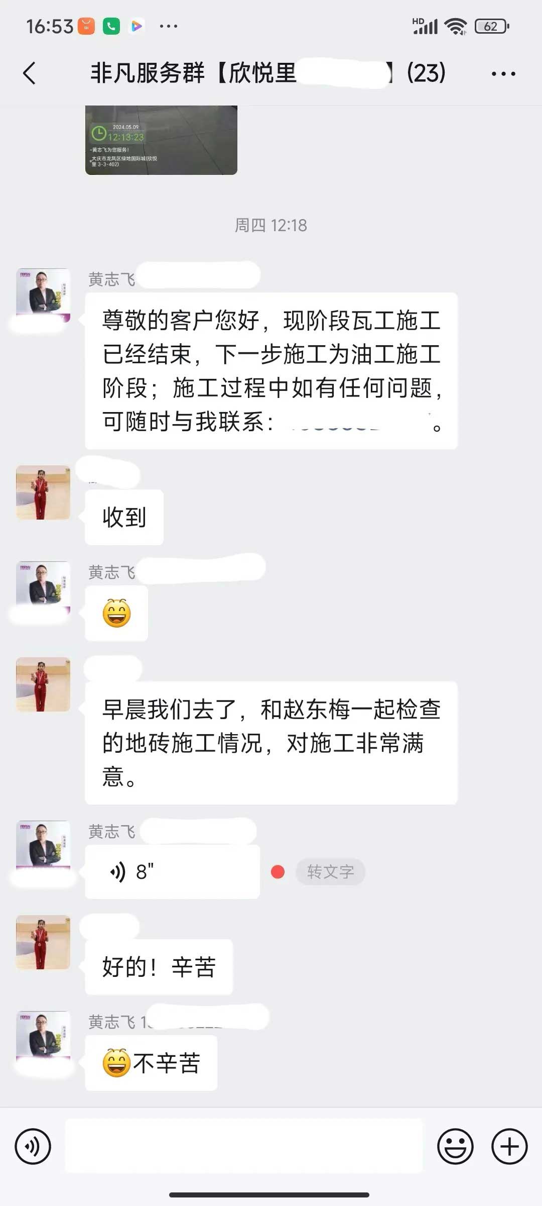 @业主们说:“活干的太好了,赏心悦目!”、“员工工作兢兢业业吃苦耐劳,我们非常放心!”、“态度端正、技术过硬、施工文明、沟通良好”...