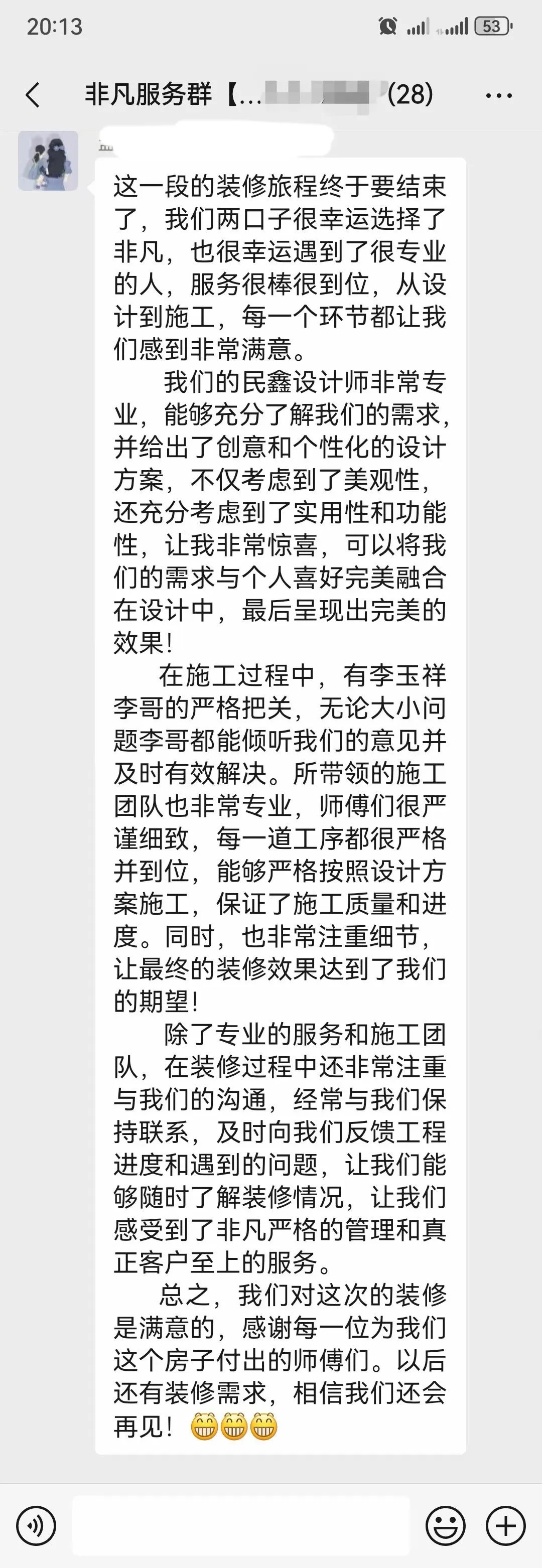 @业主们说:“嘎嘎满意”、“非常幸运选择了非凡装饰”、“整个工程质量和及文明施工方面都非常到位”...