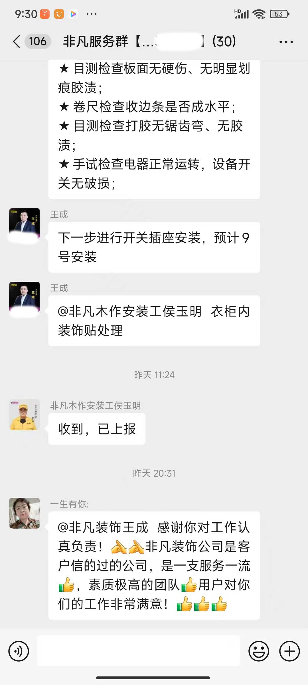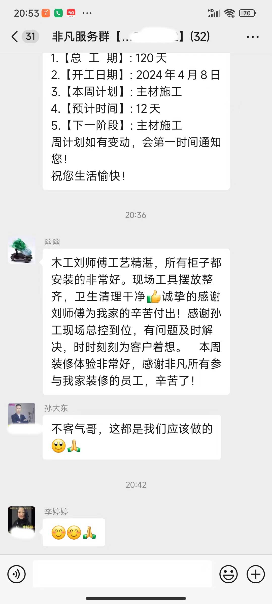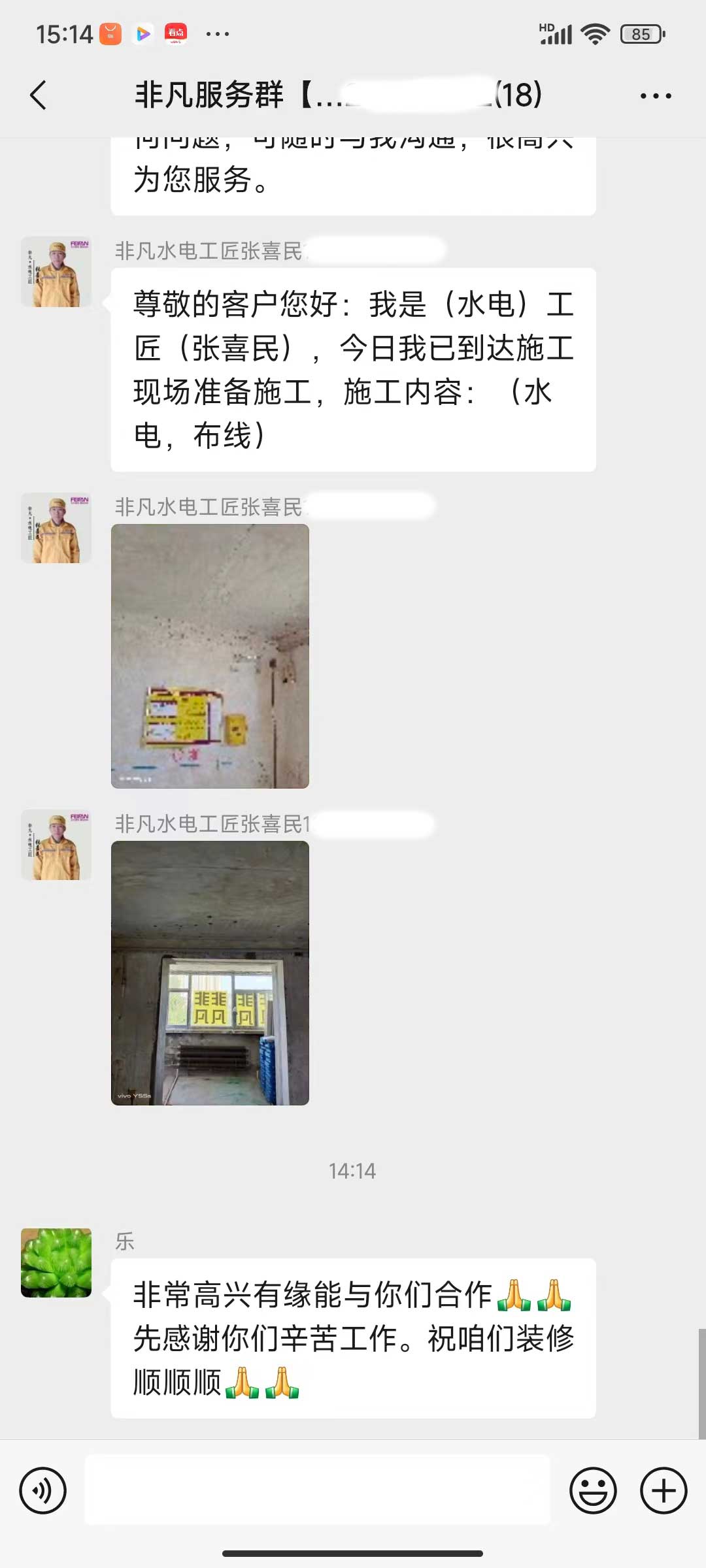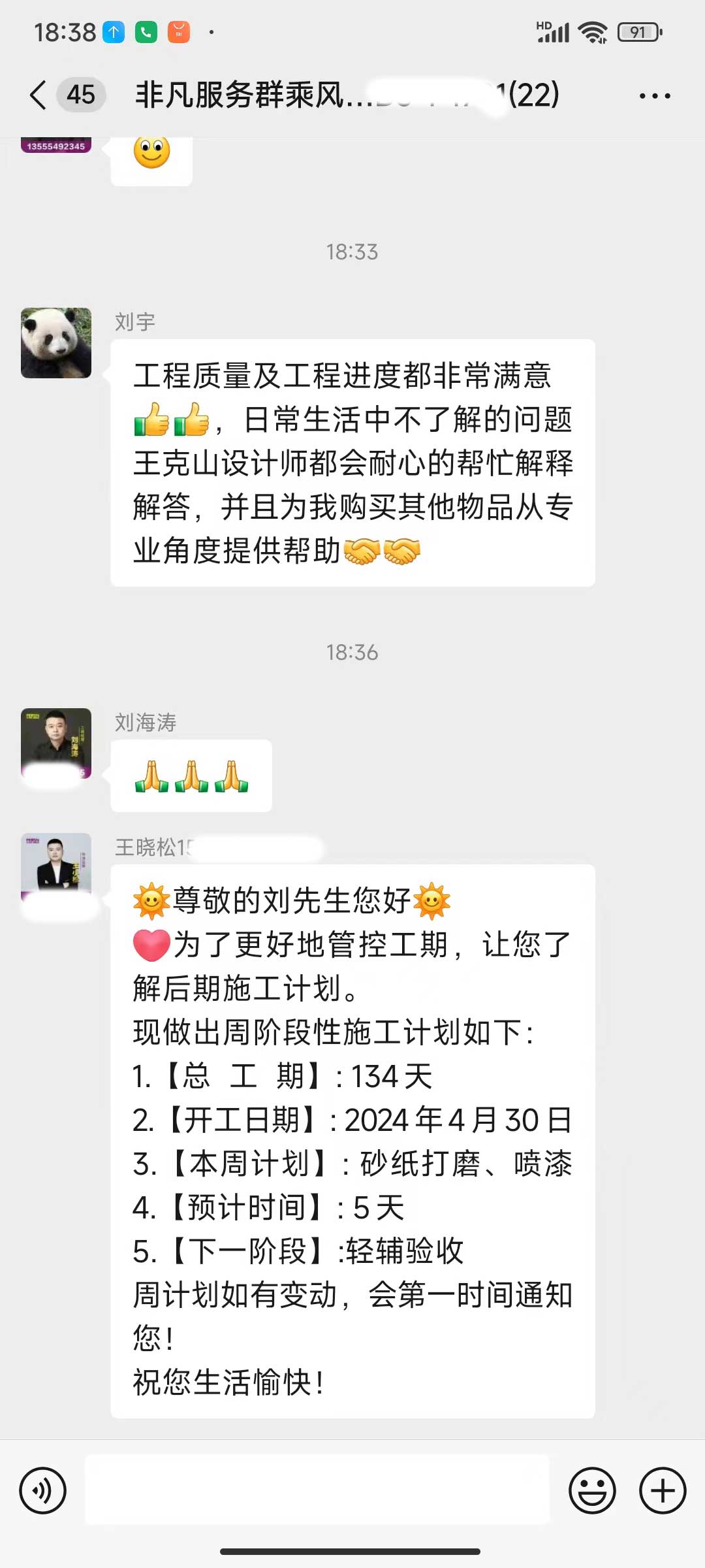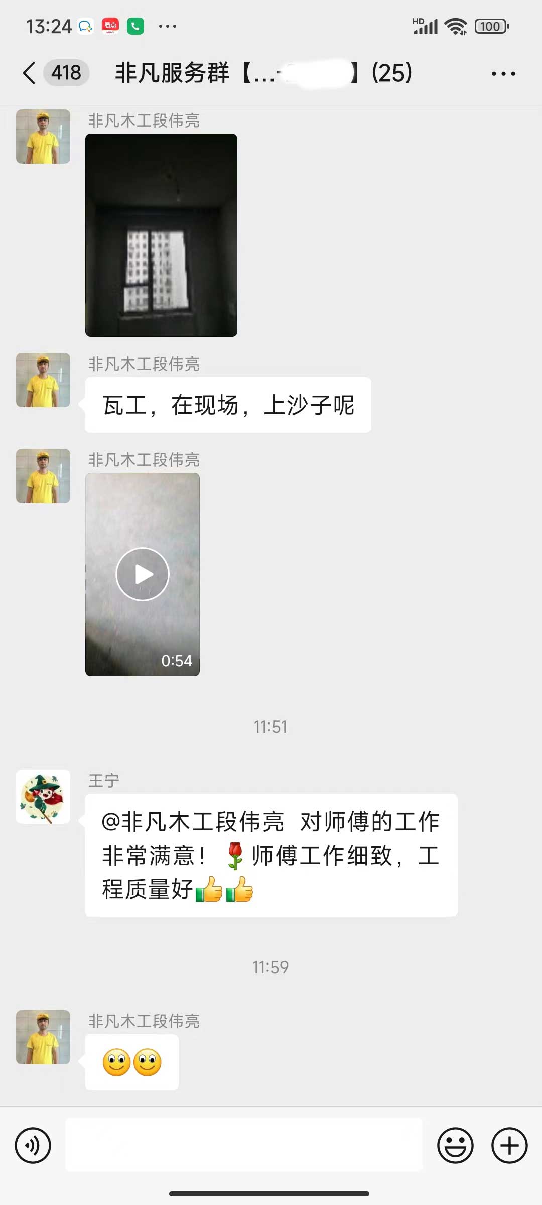 每天都在群里汇报当日的施工进度和施工内容