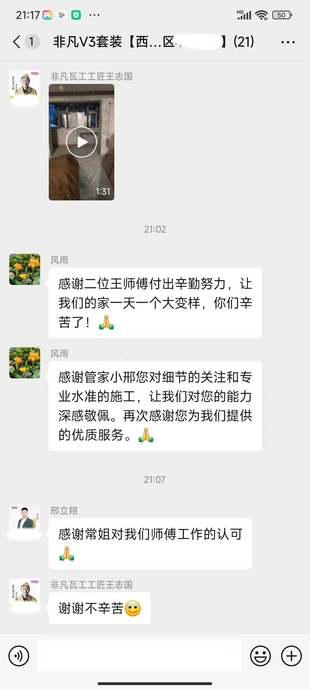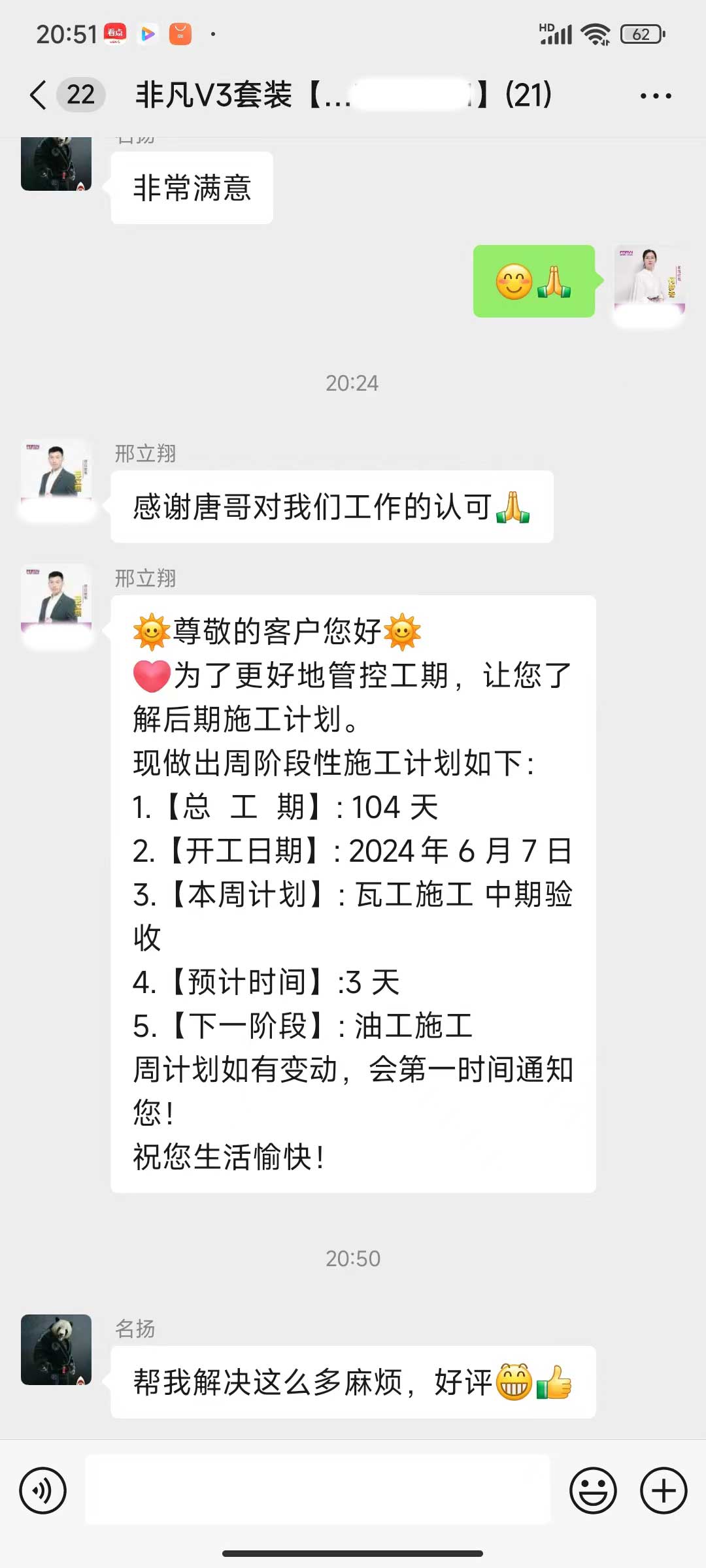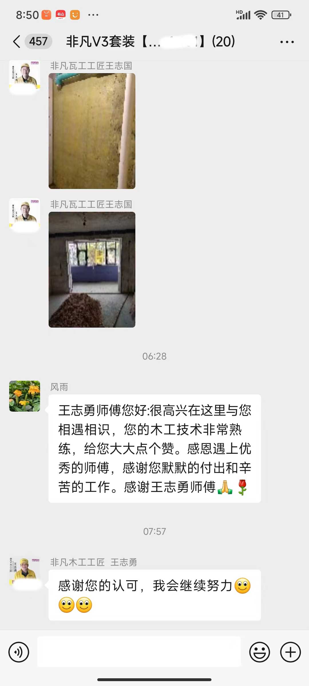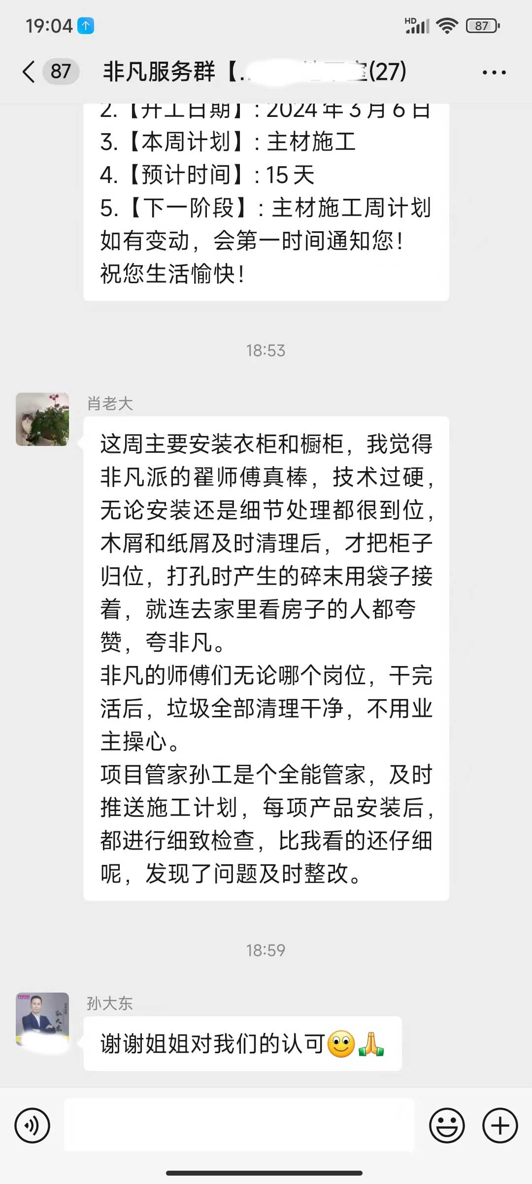 每天都在群里汇报当日的施工进度和施工内容