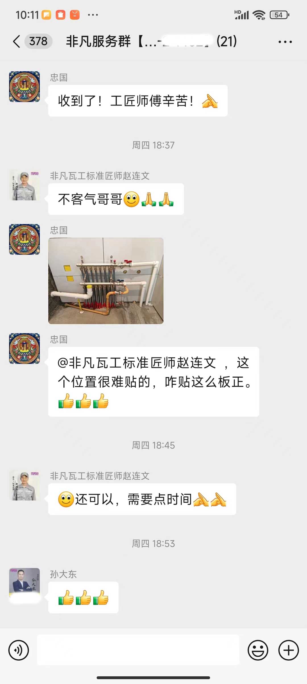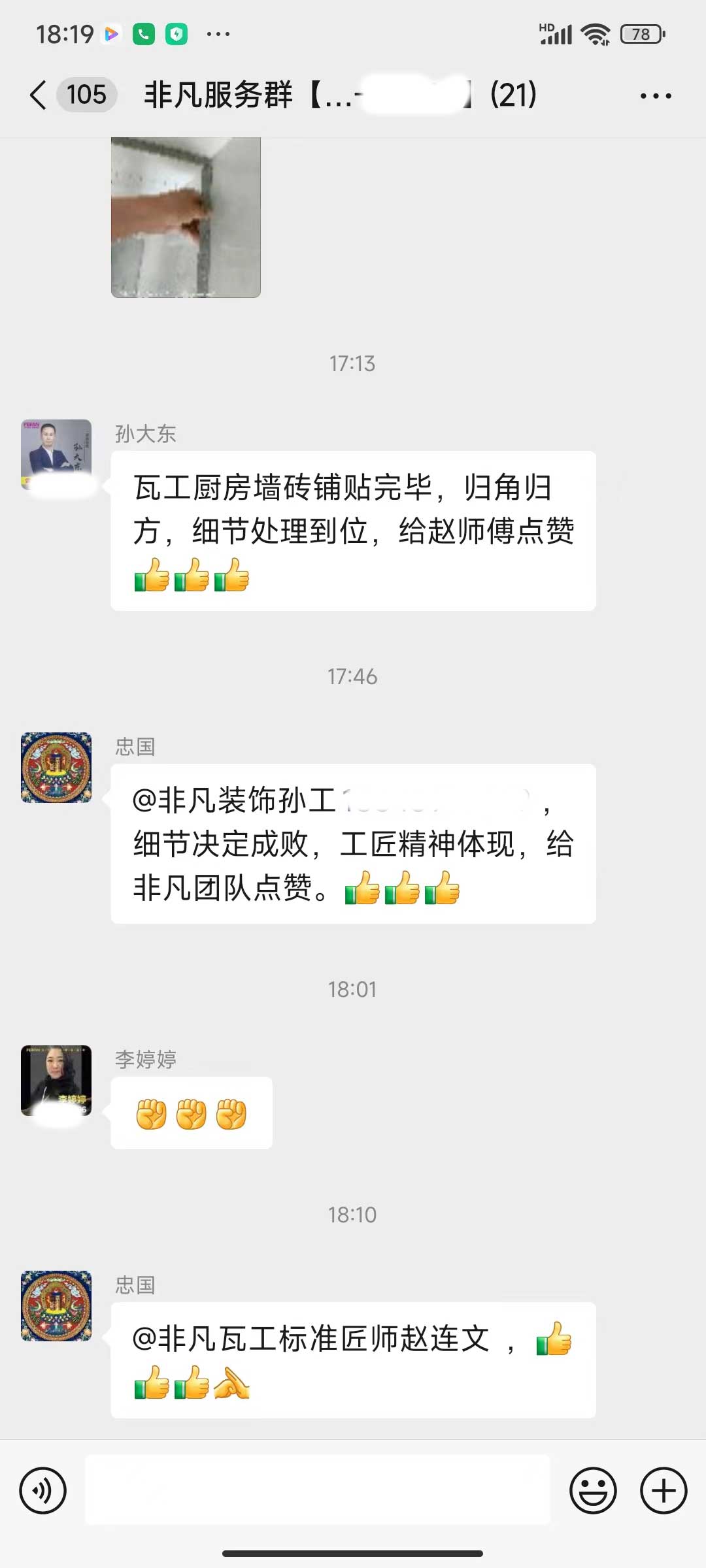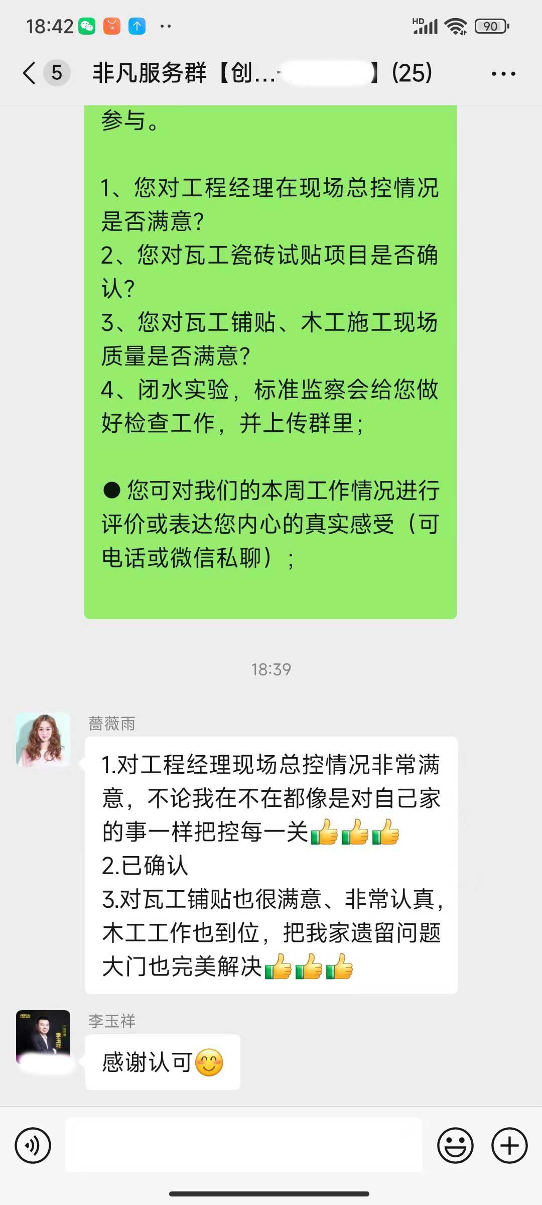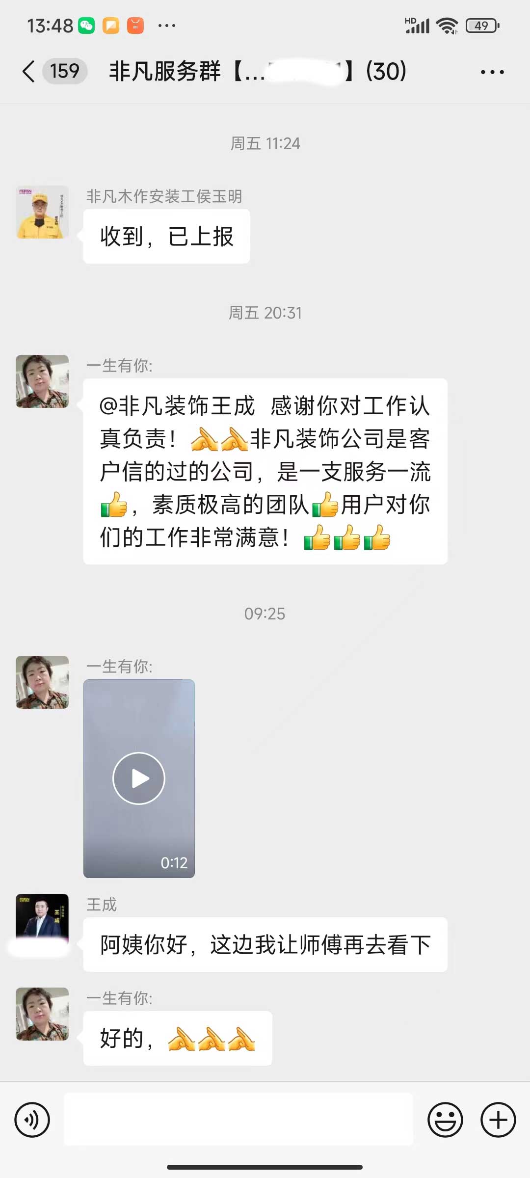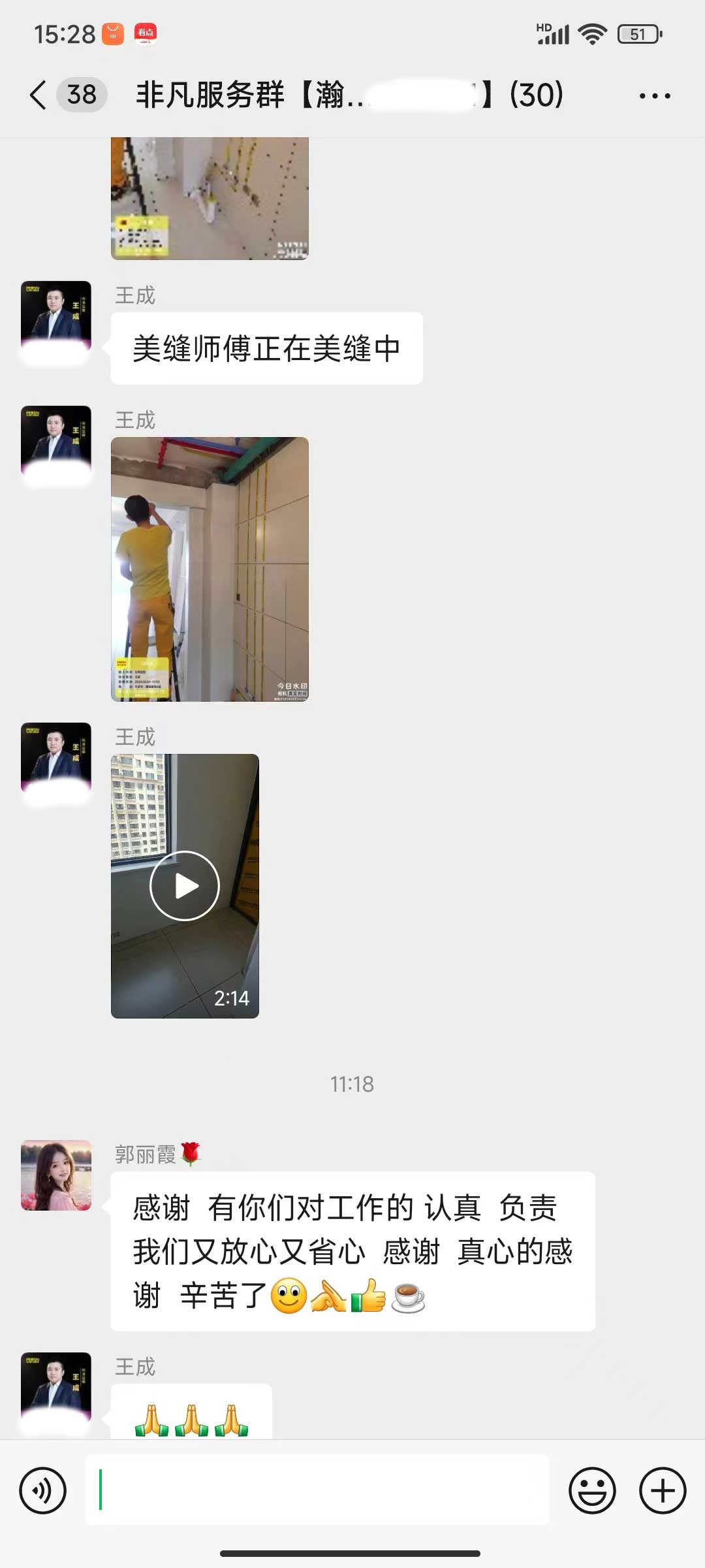 每天都在群里汇报当日的施工进度和施工内容