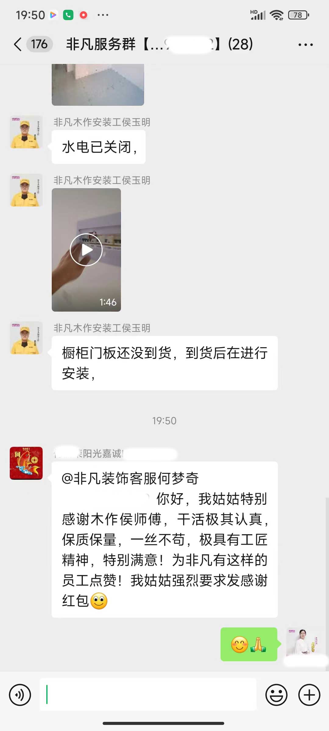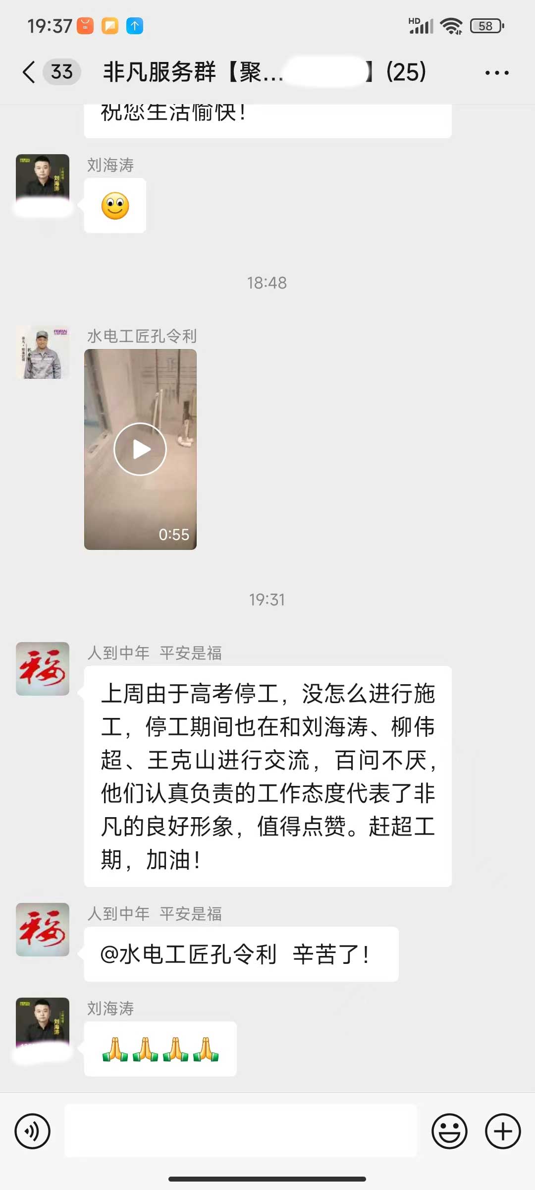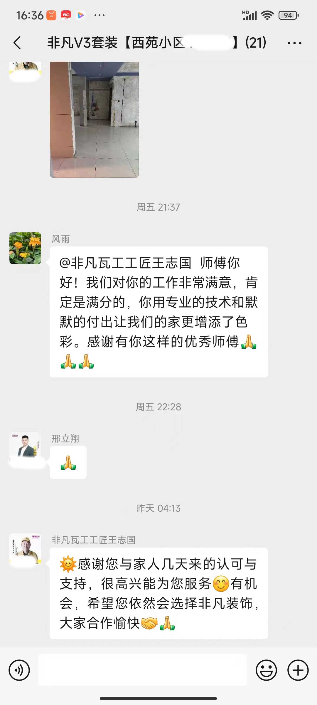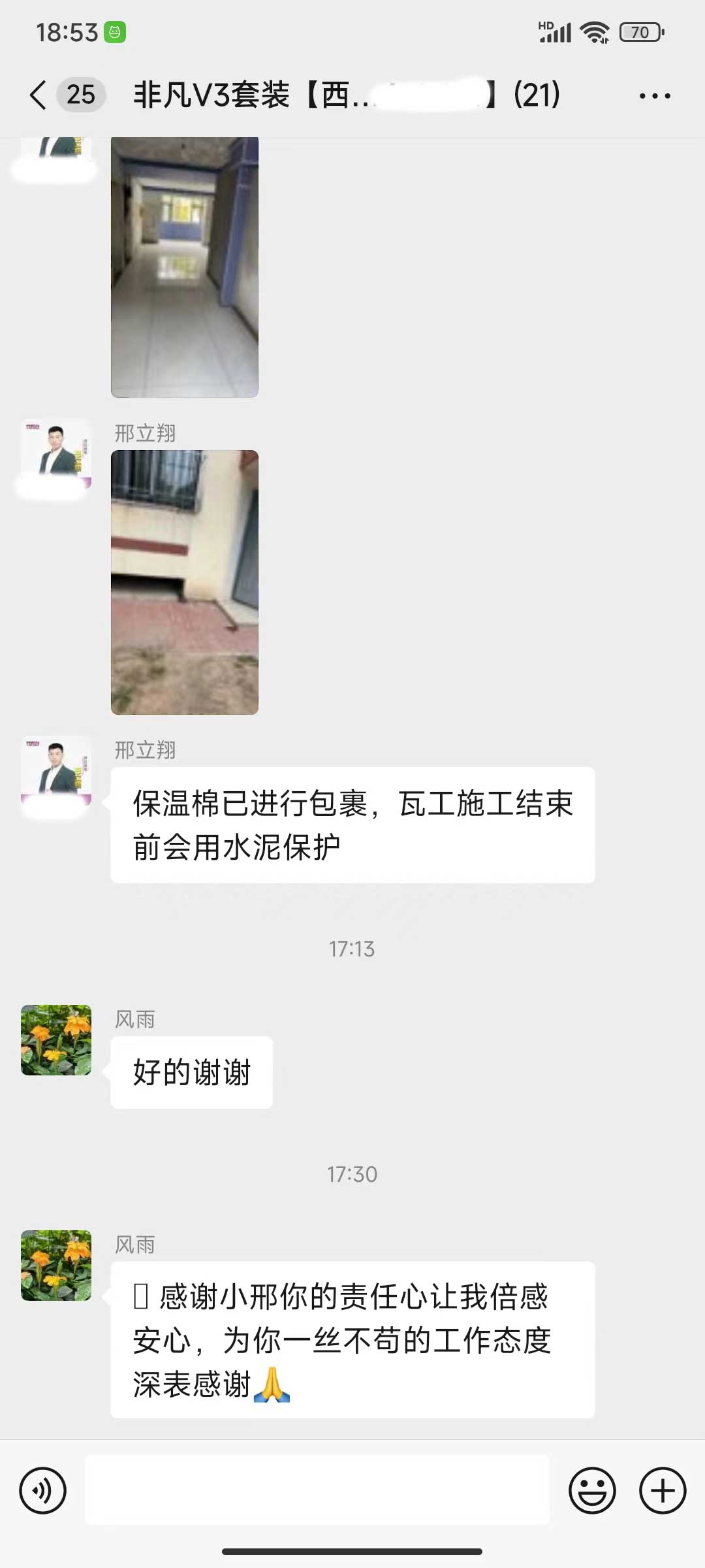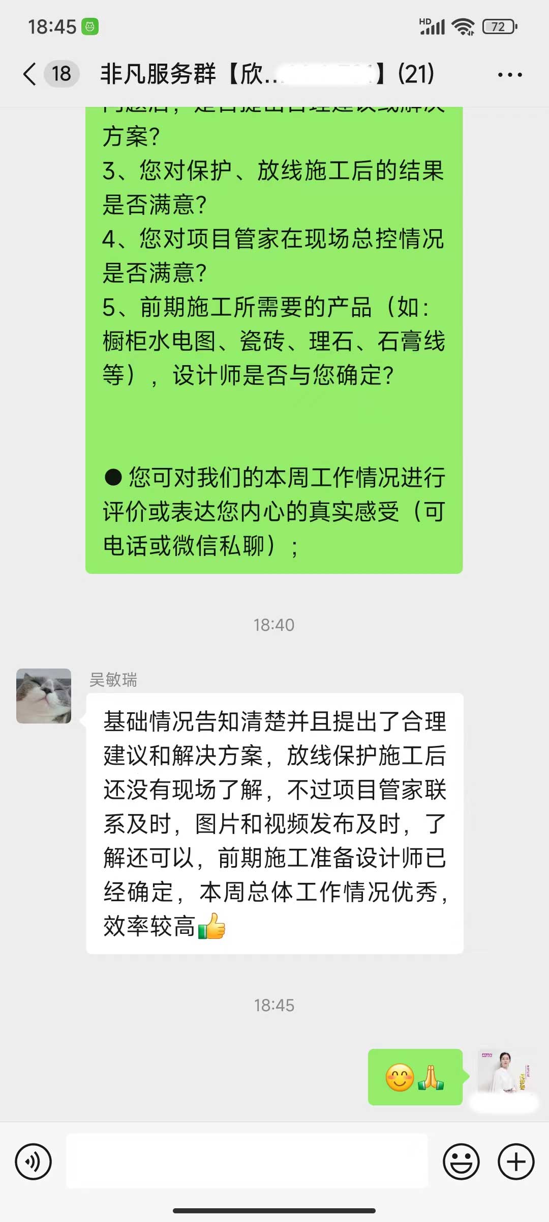 每天都在群里汇报当日的施工进度和施工内容