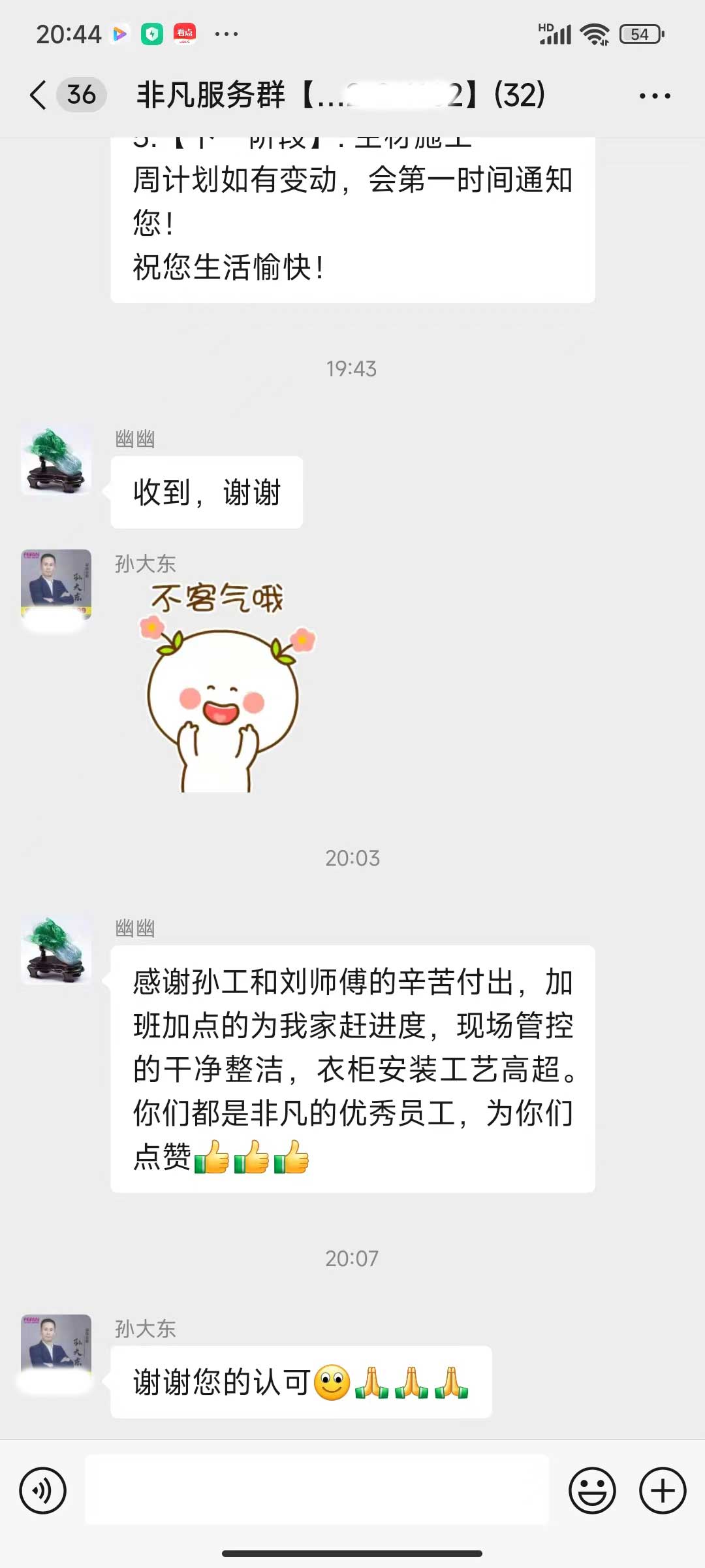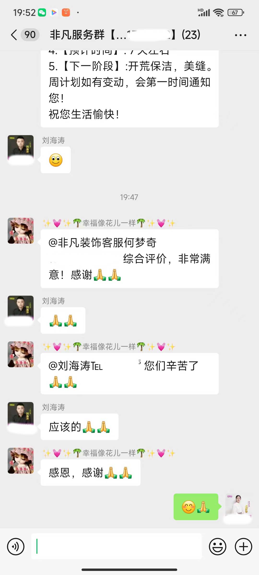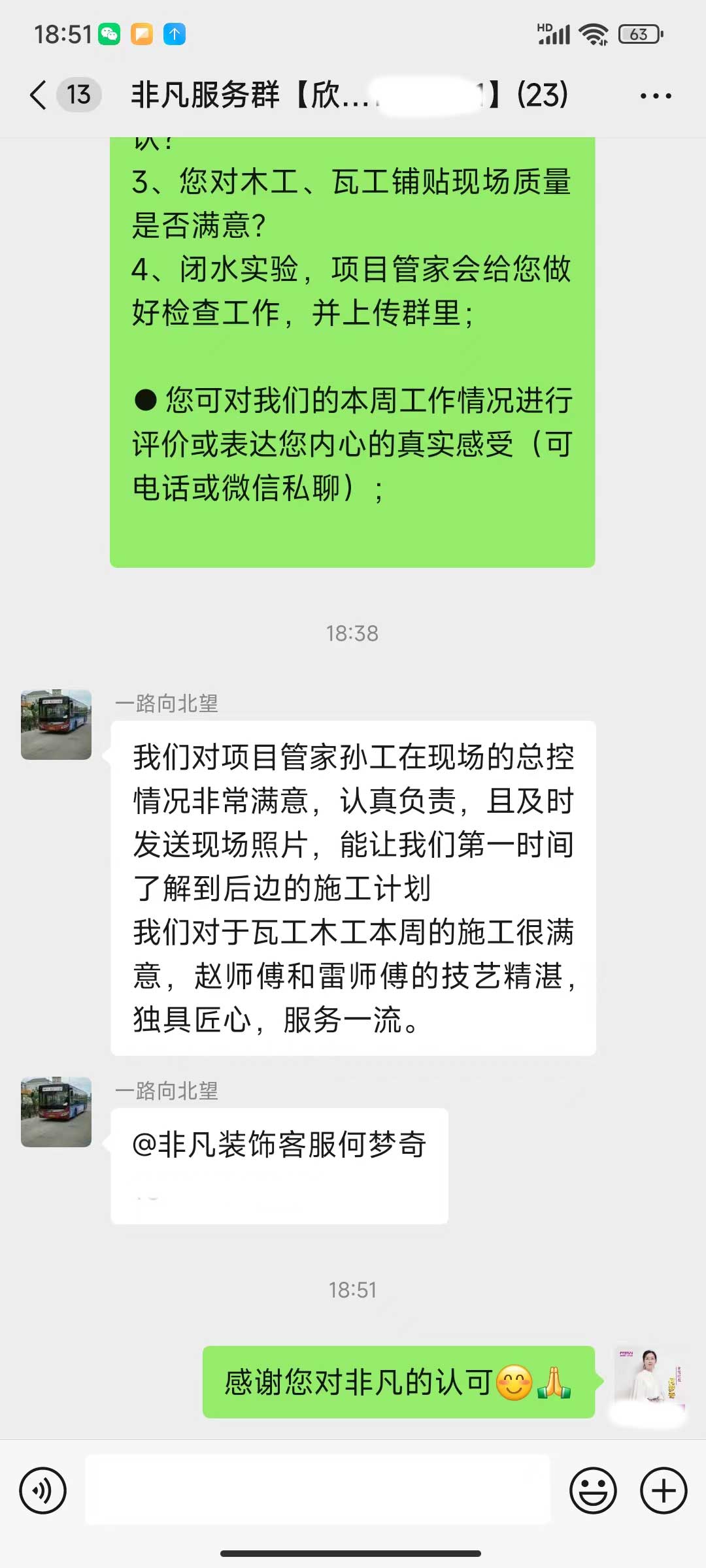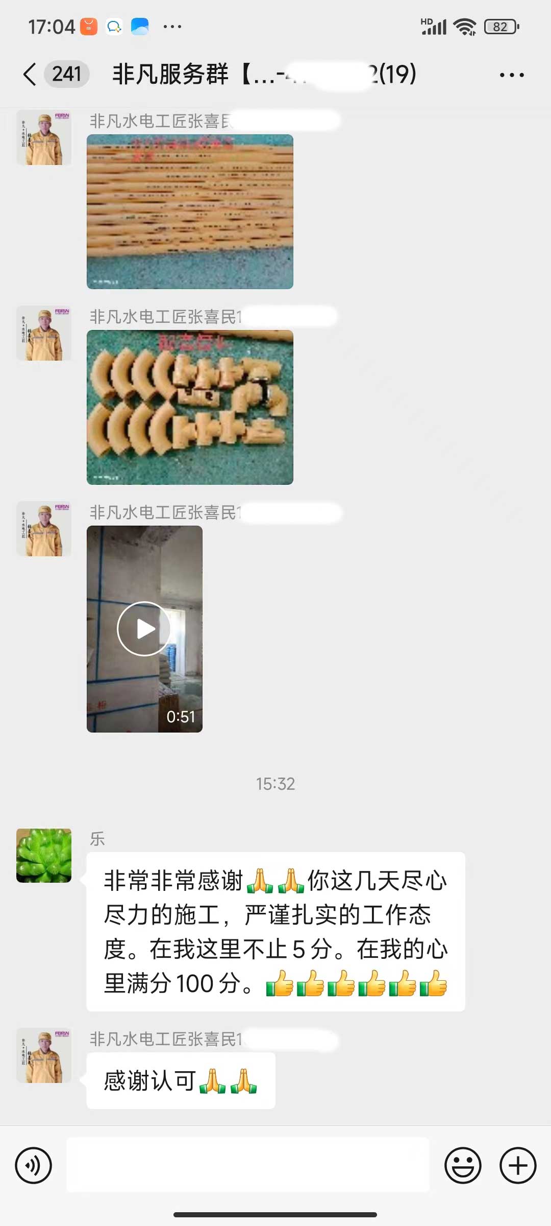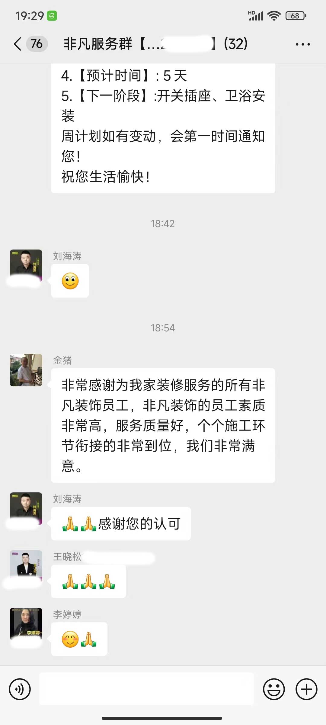 每天都在群里汇报当日的施工进度和施工内容