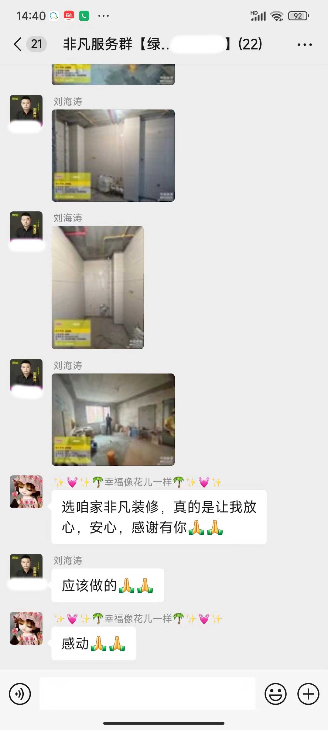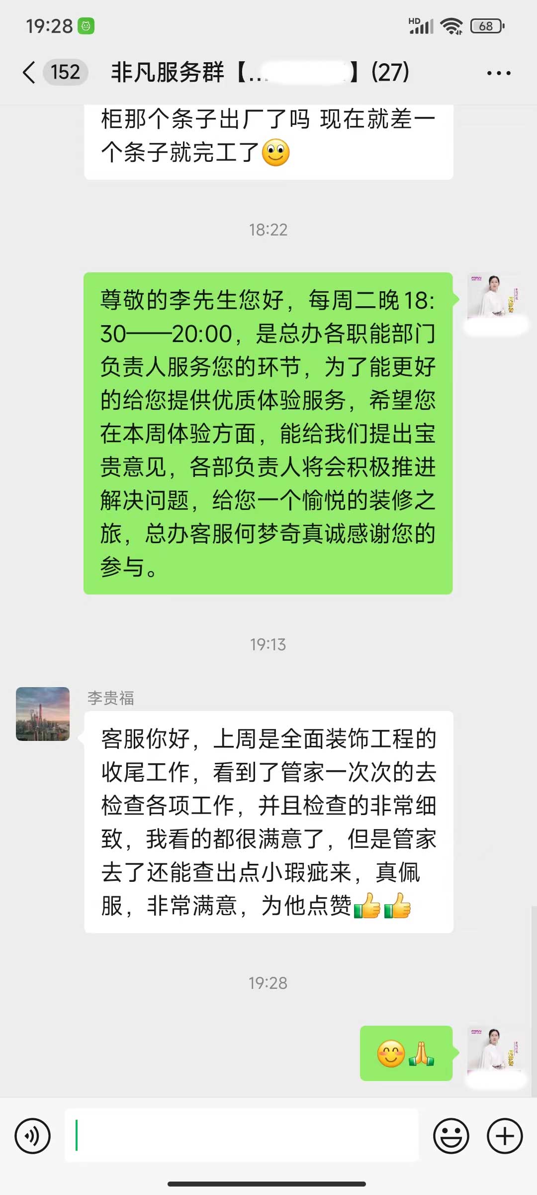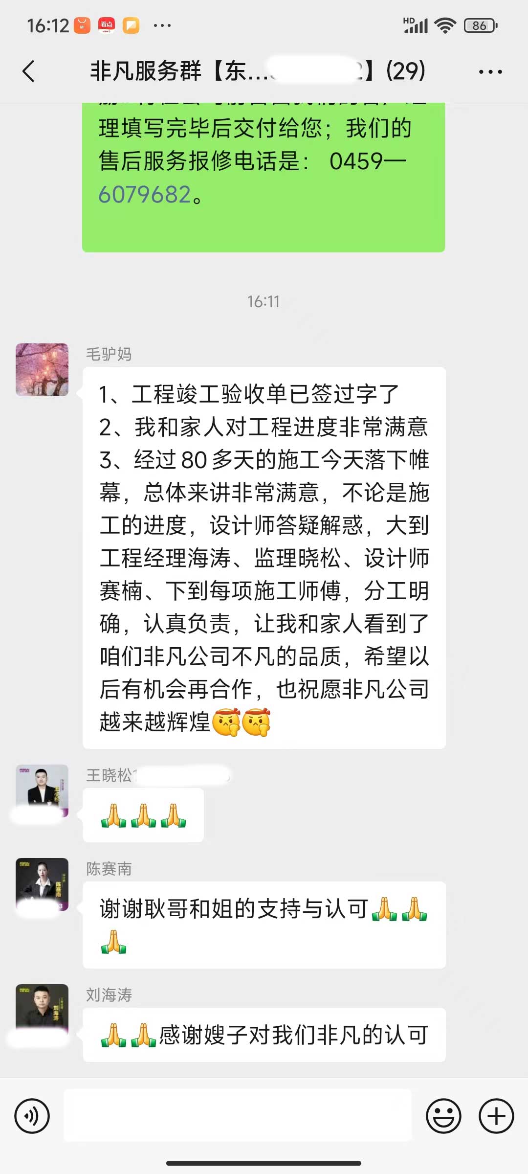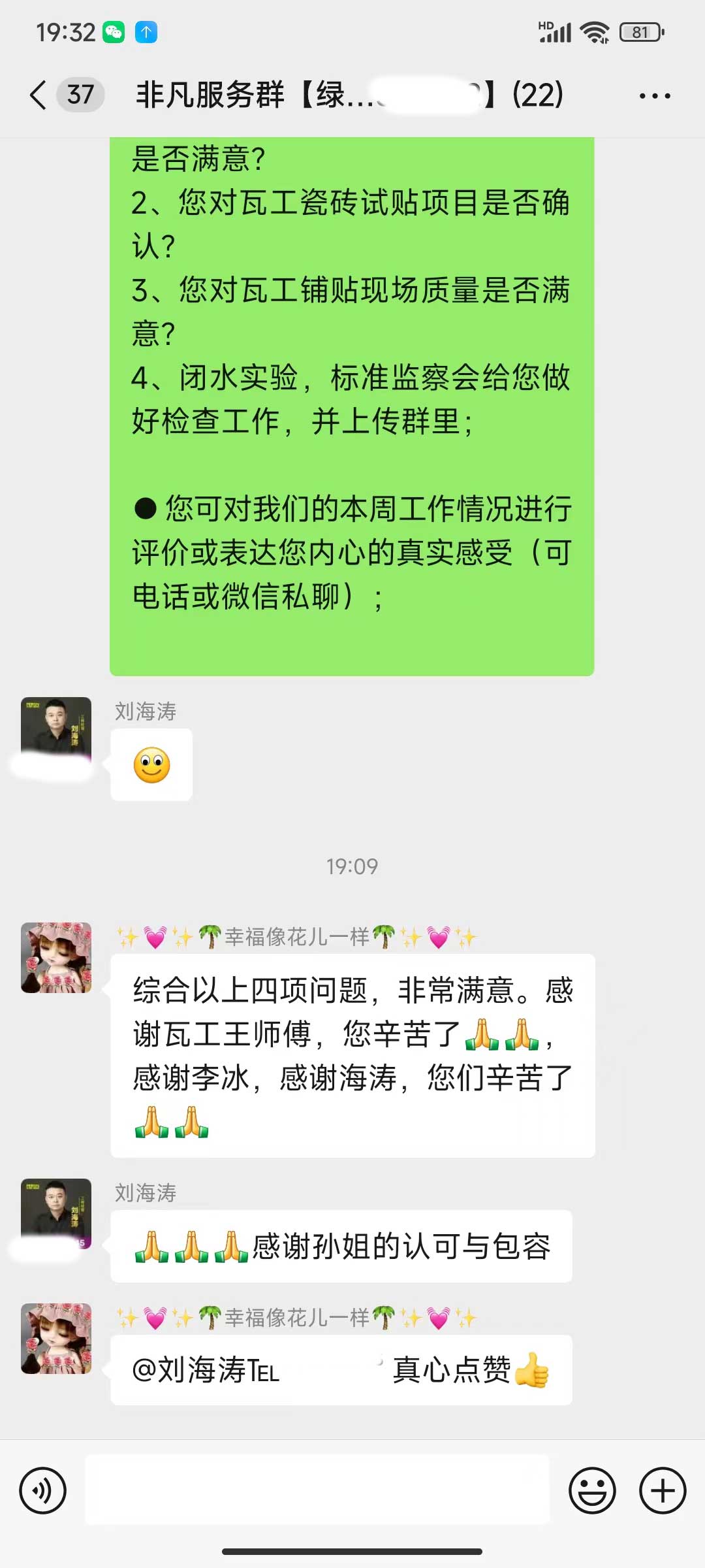 每天都在群里汇报当日的施工进度和施工内容