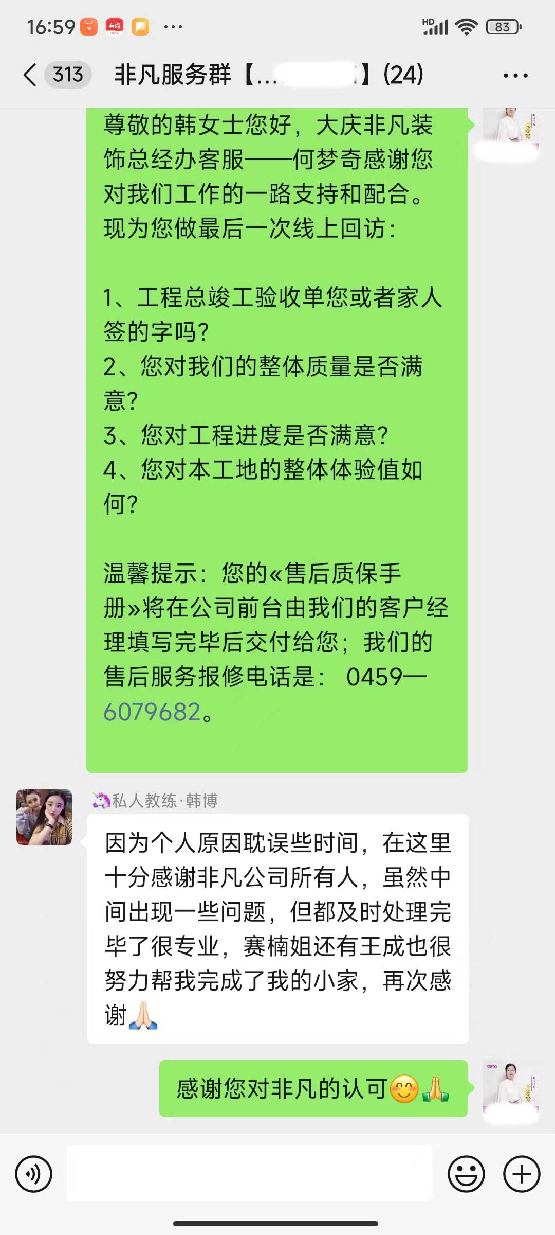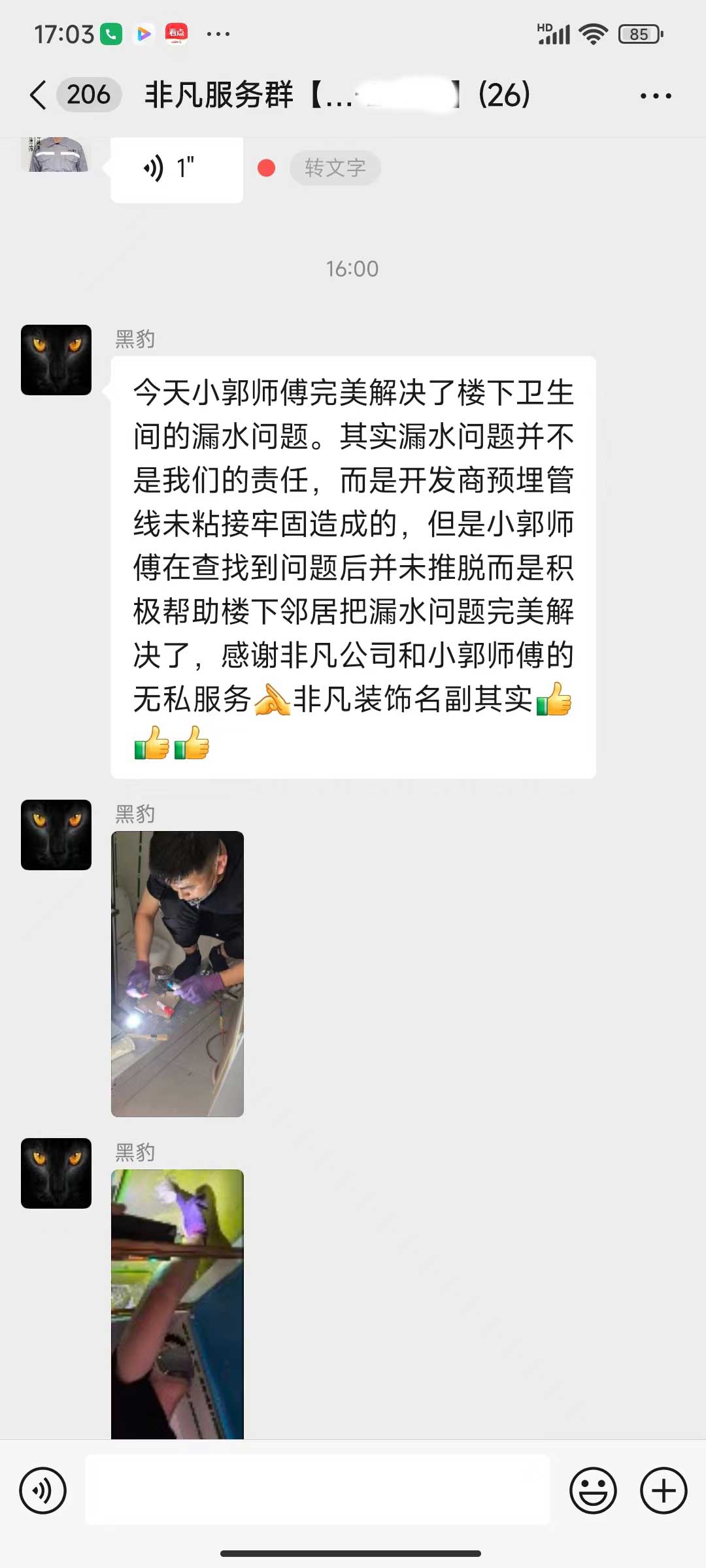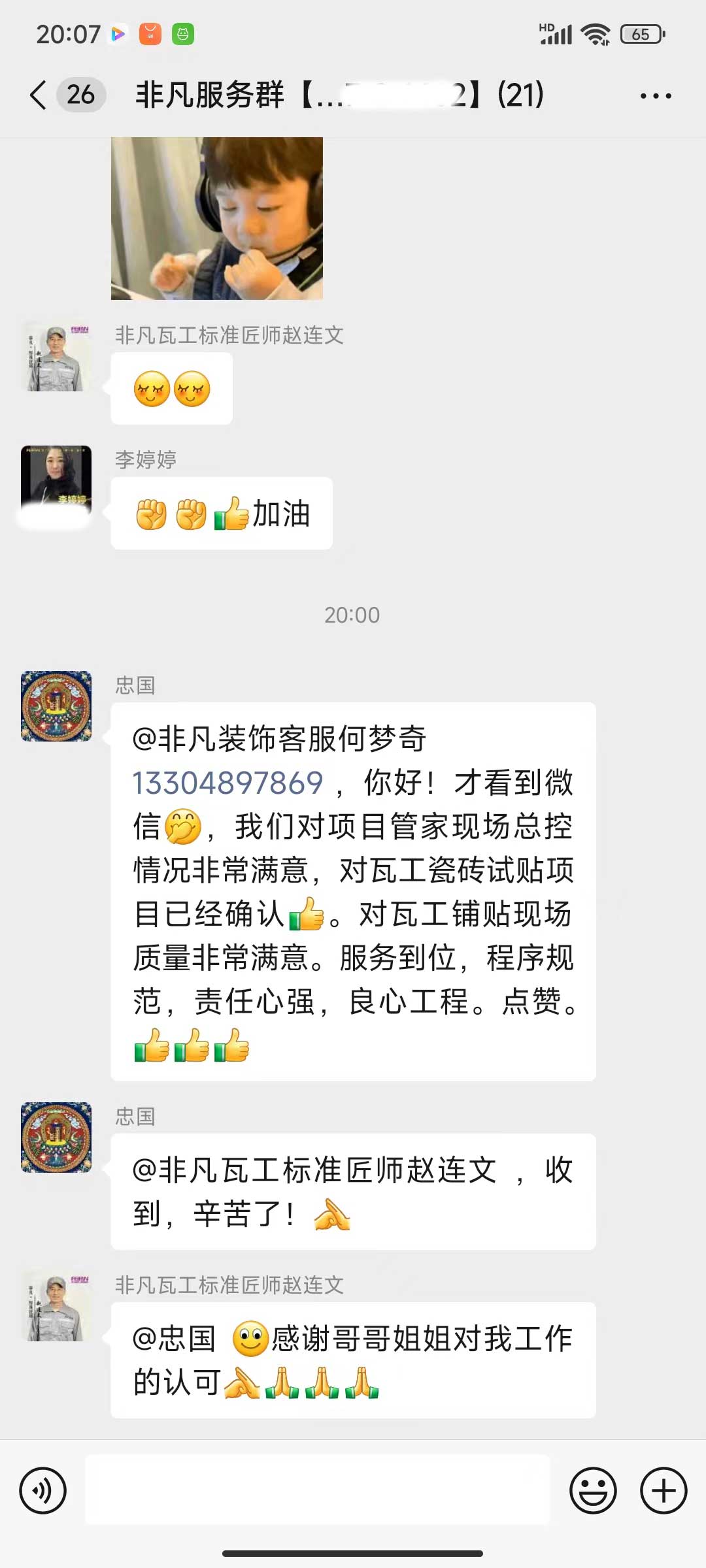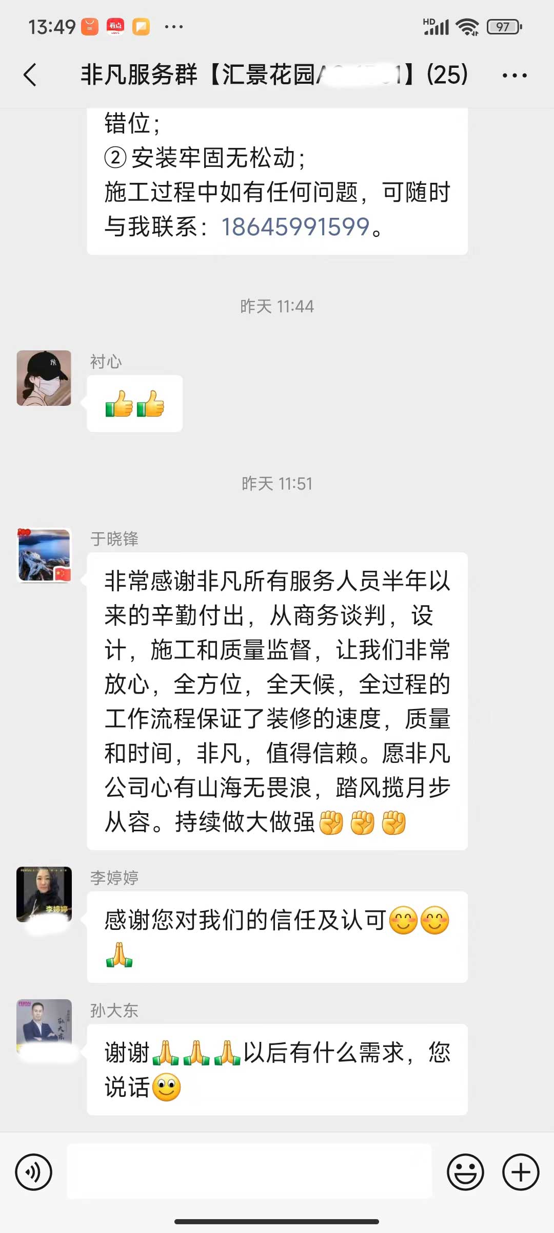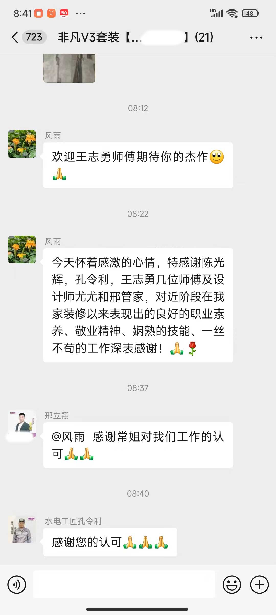 每天都在群里汇报当日的施工进度和施工内容