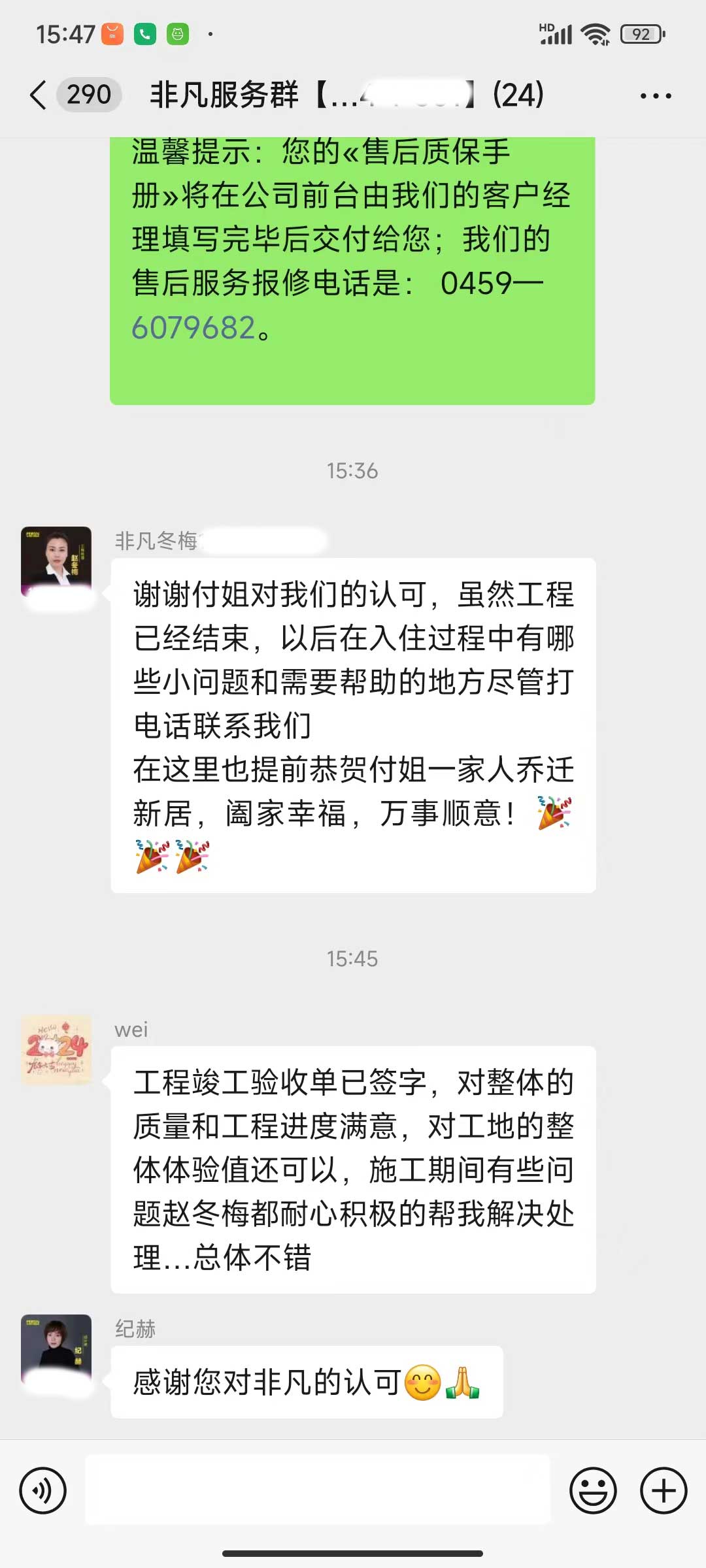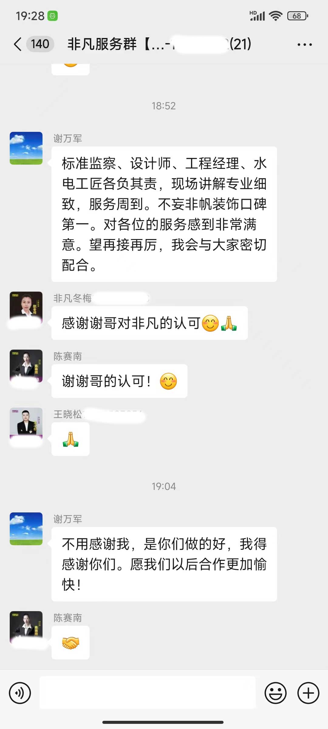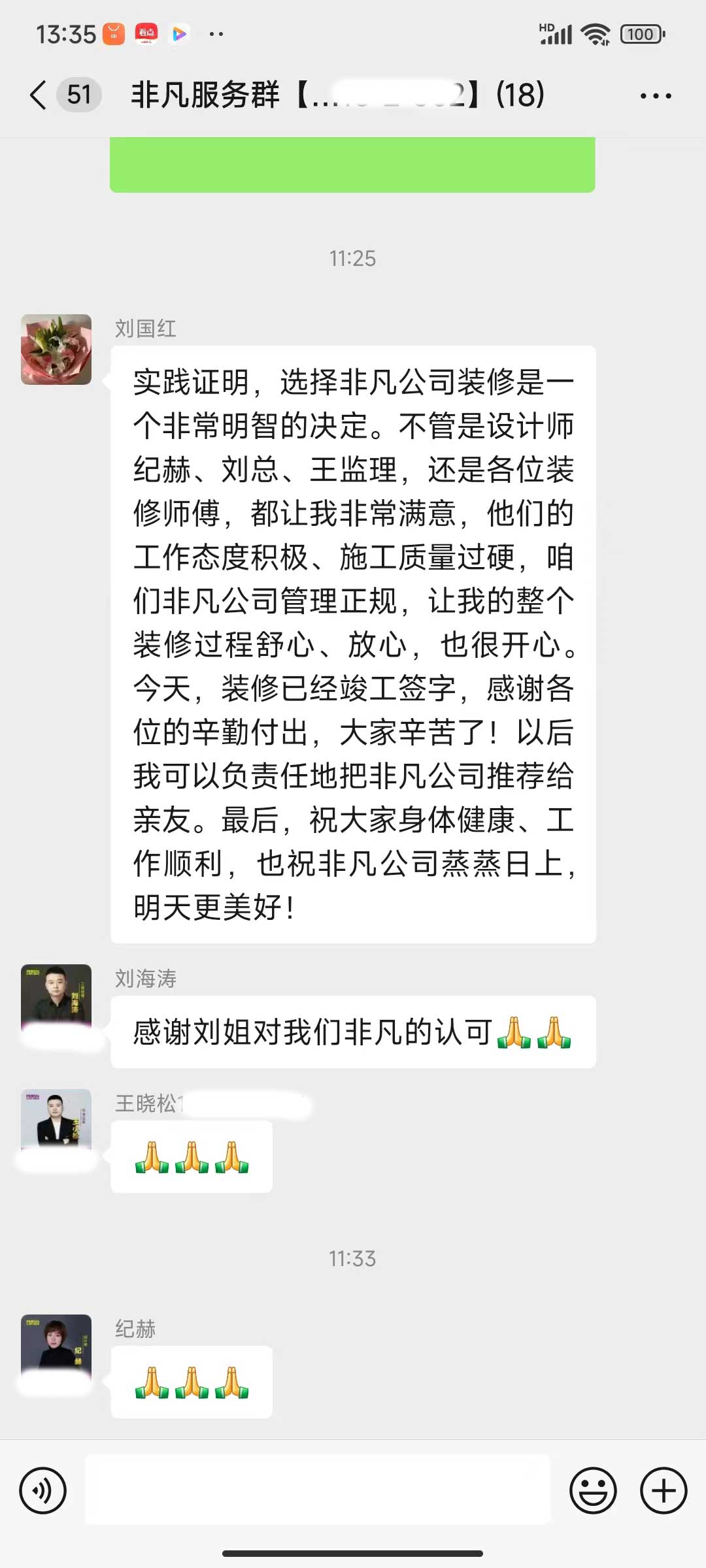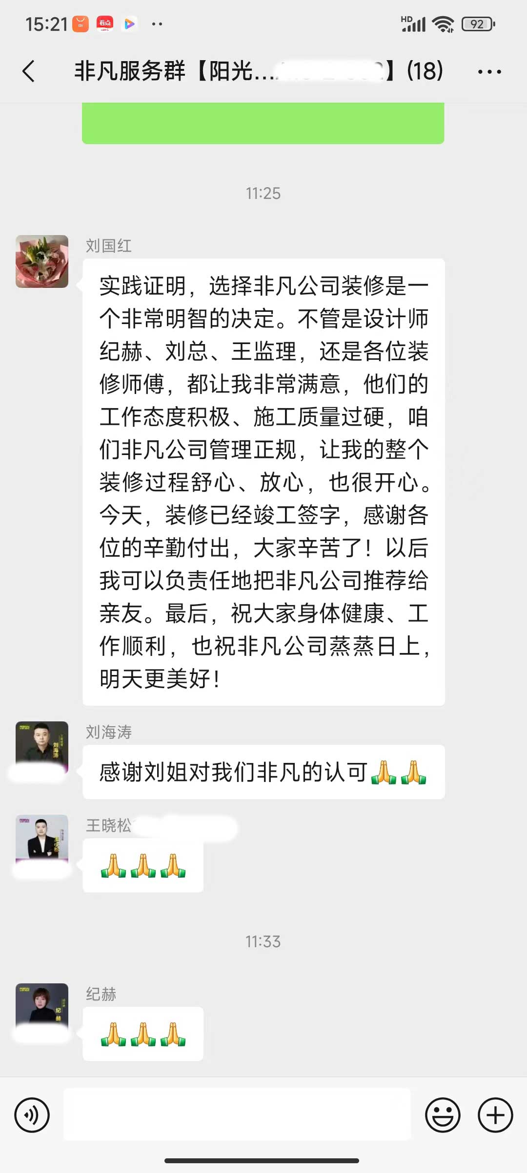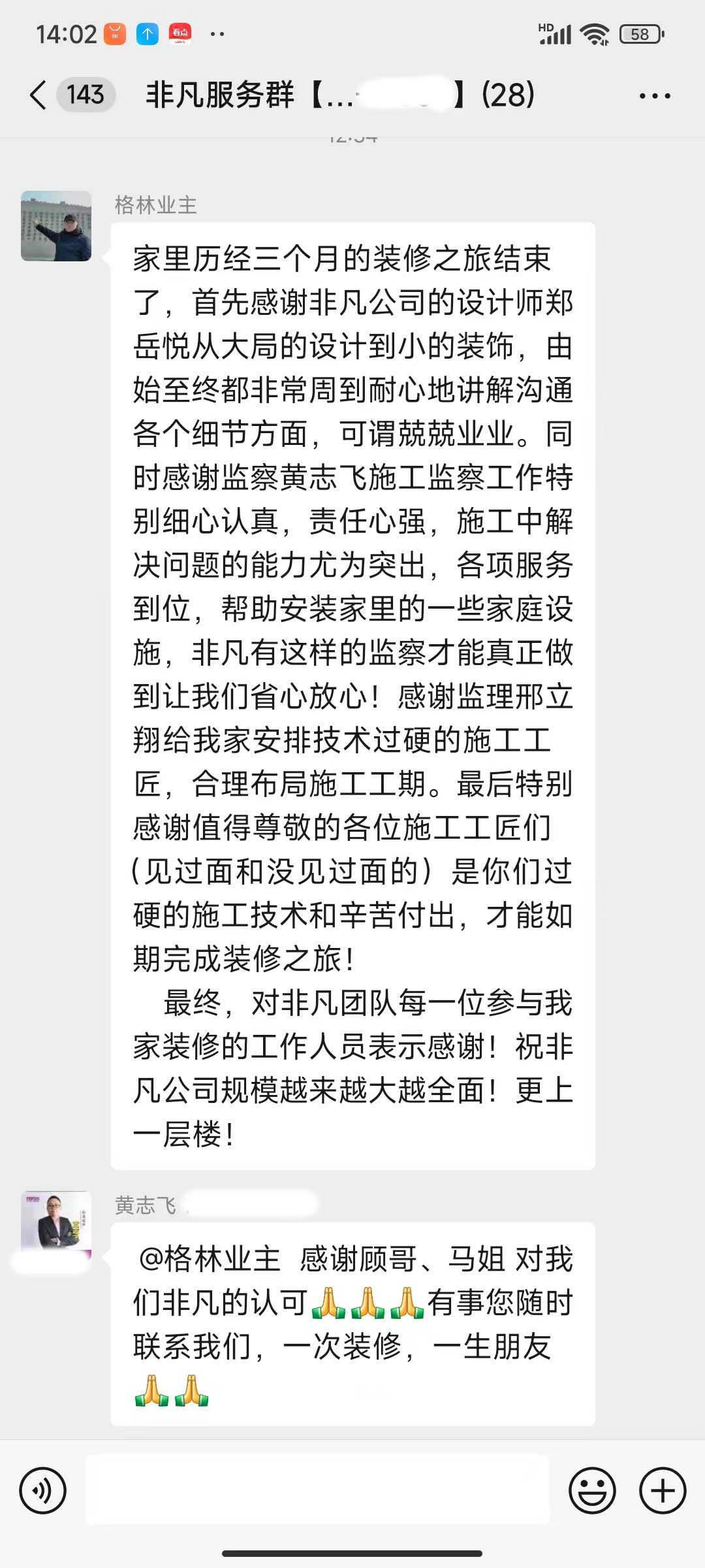 每天都在群里汇报当日的施工进度和施工内容