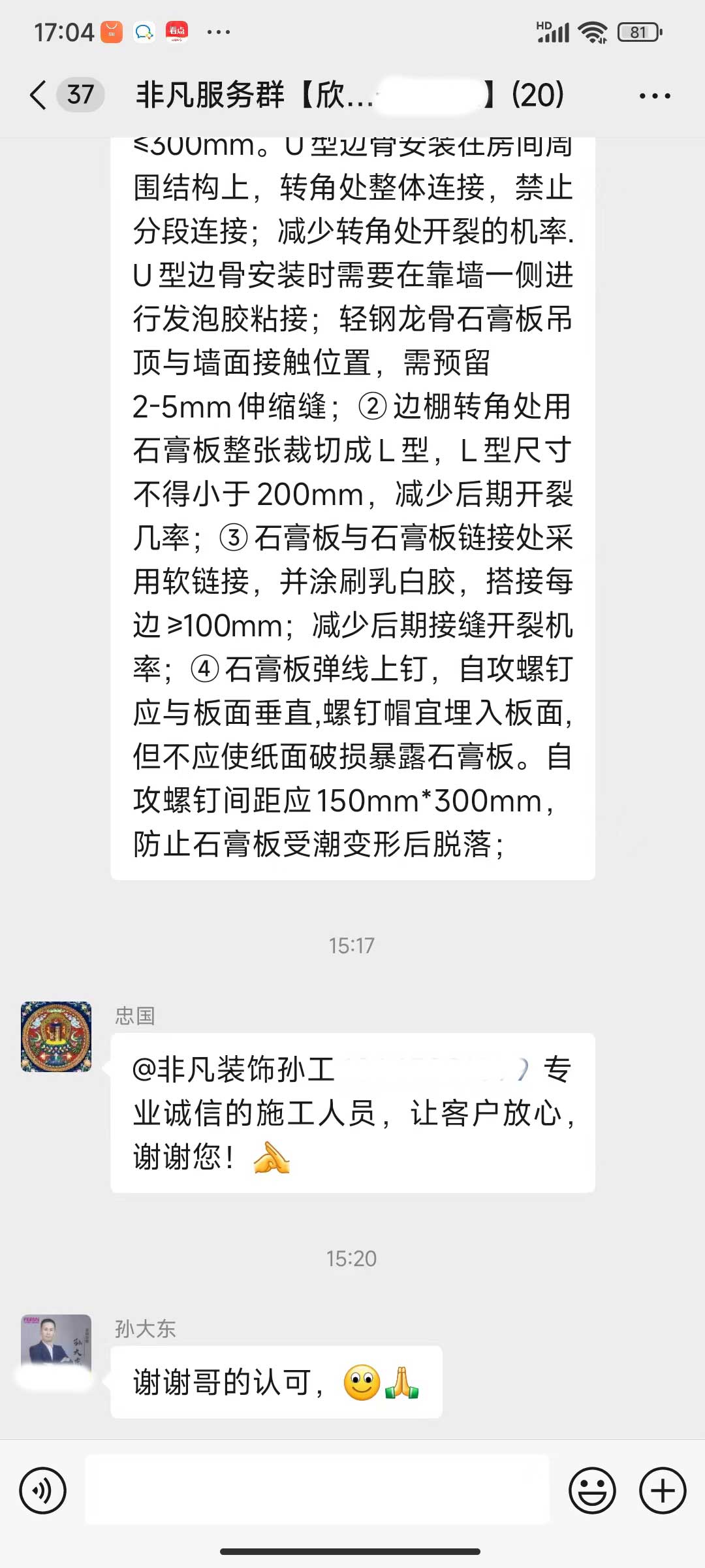 业主打的交道的就是我们的工人师傅了