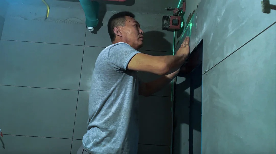 瓦工工作看似简单,实则需要技巧和耐心。贴砖要做到横平竖直,缝隙均匀,这不仅考验眼力,更考验手上的功夫。” 为了达到完美的效果,他在工作中总是精益求精,不放过任何一个细节。他会仔细测量每一块砖的尺寸,计算好缝隙的宽度,确保每一块砖都能贴得恰到好处。