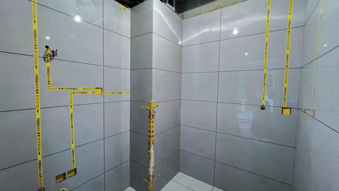 特别是非凡升级了全瓷砖上墙的施工工艺后,由瓷砖胶代替了传统的水泥砂浆,薄贴工艺要求师傅把墙先规方找平之后再用瓷砖胶去粘贴,这样贴出来效果更好,但同时对师傅们来说也是一项考验。