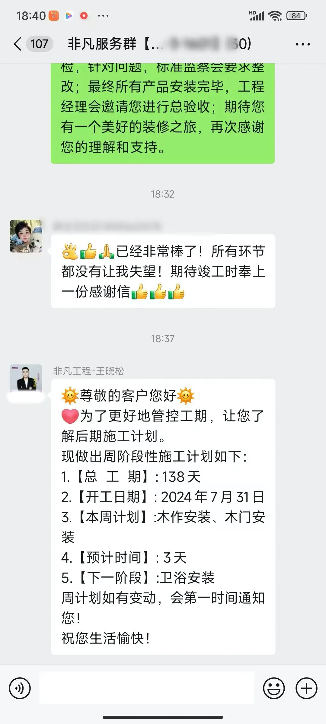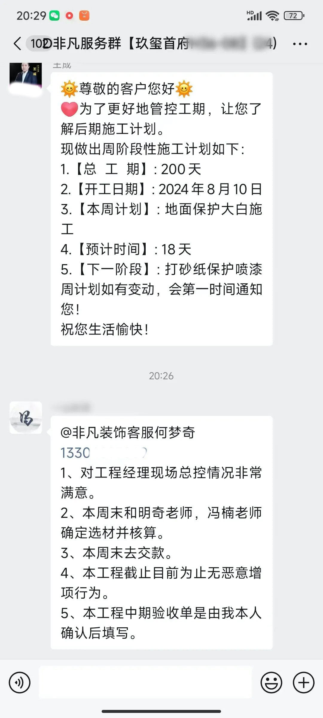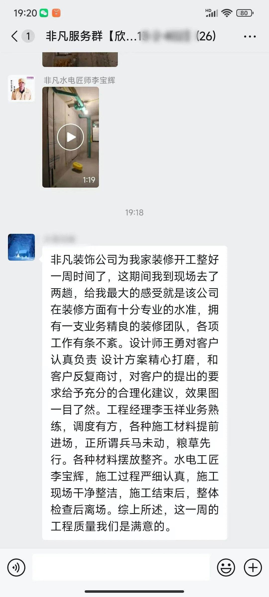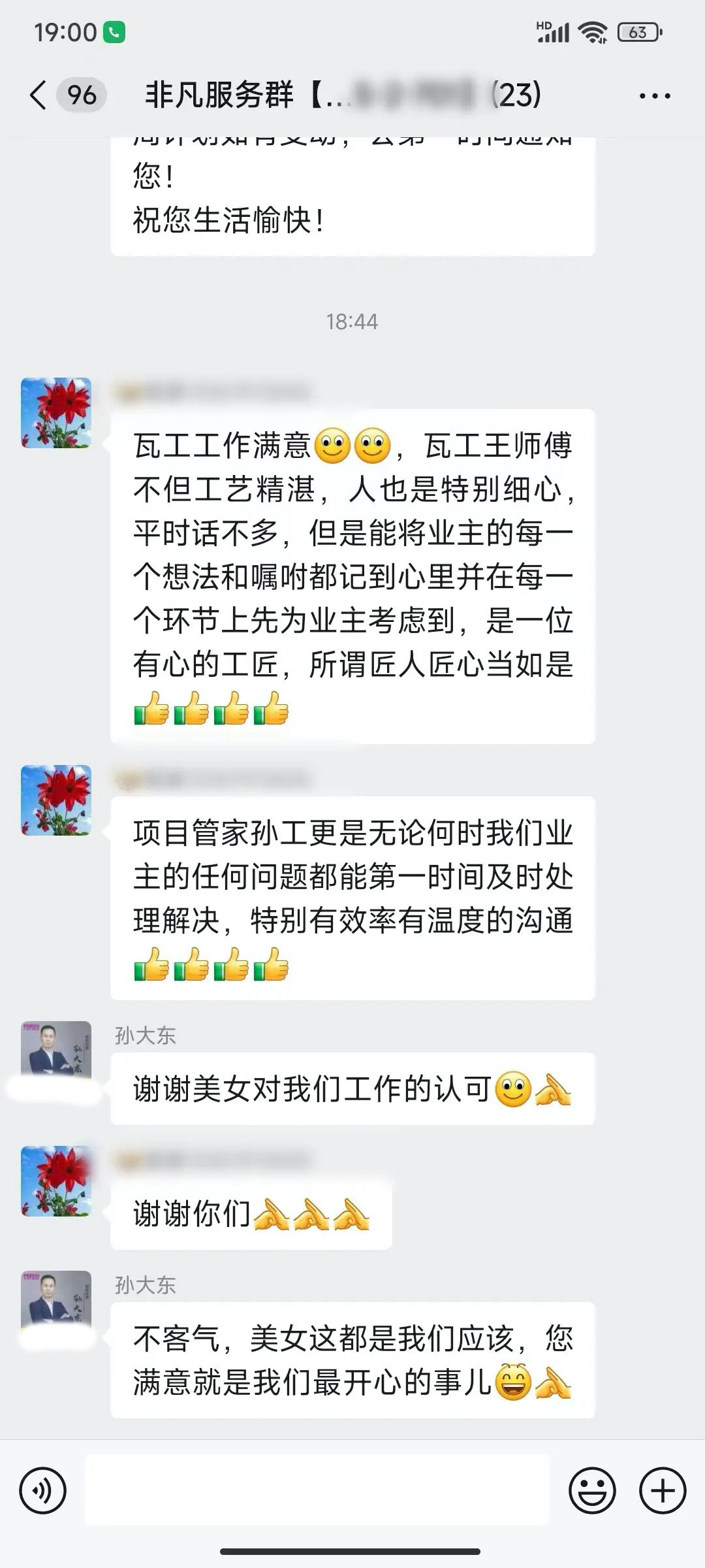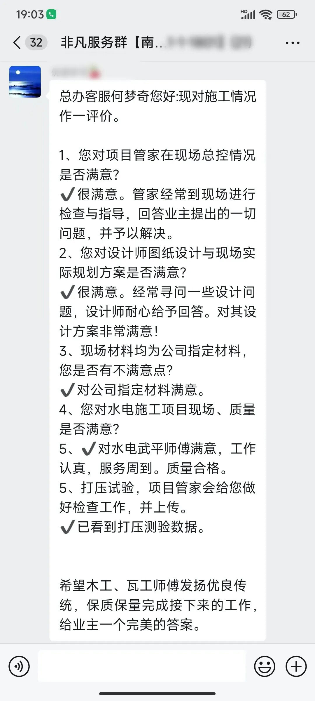 业主的每一句话都是对我们鼓励和肯定