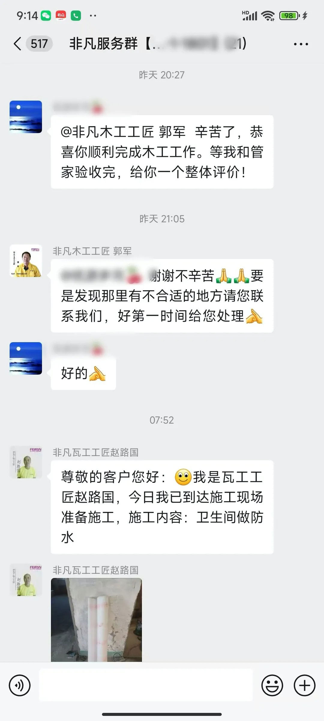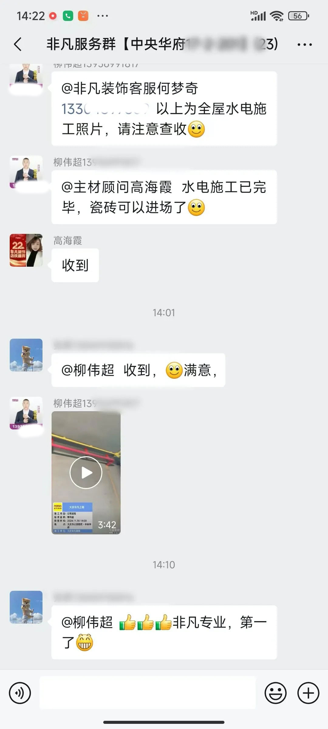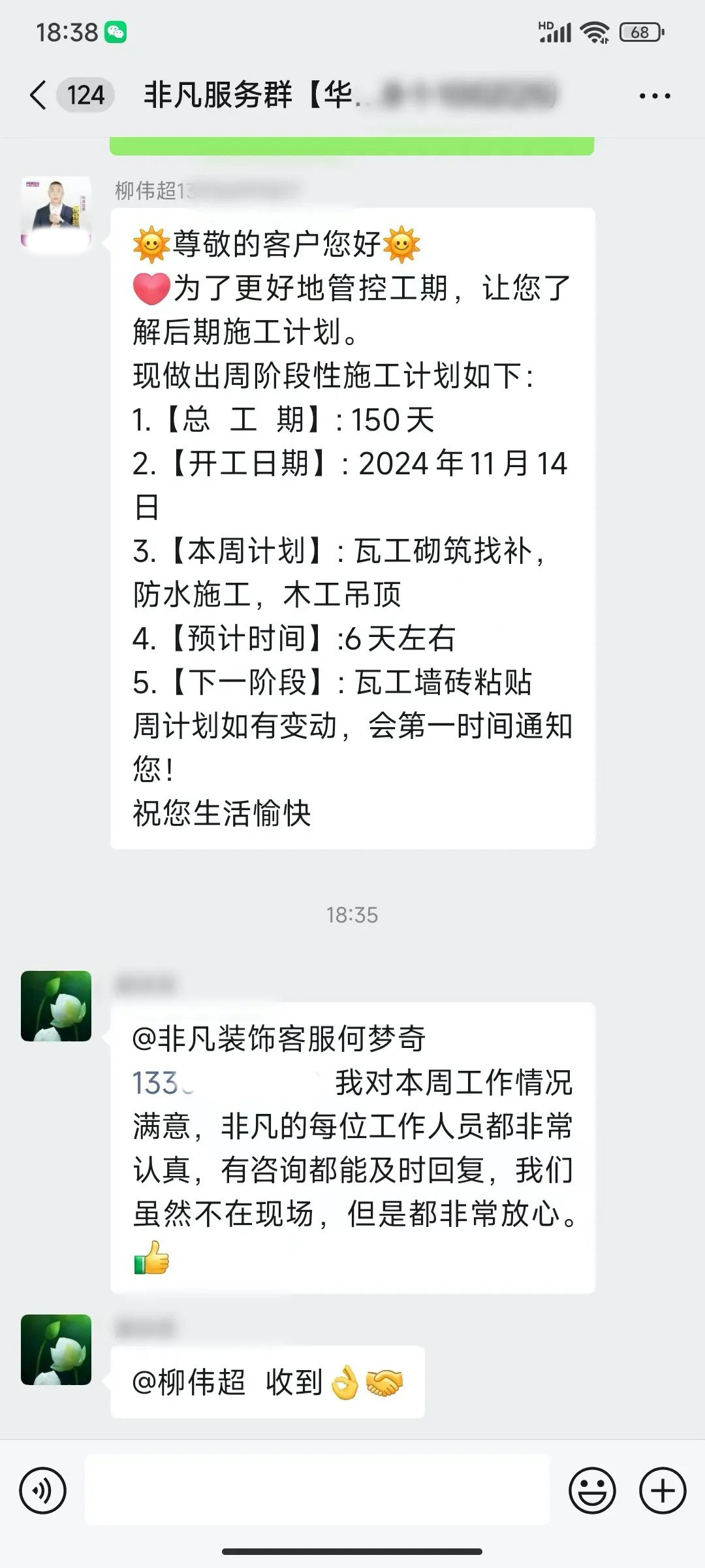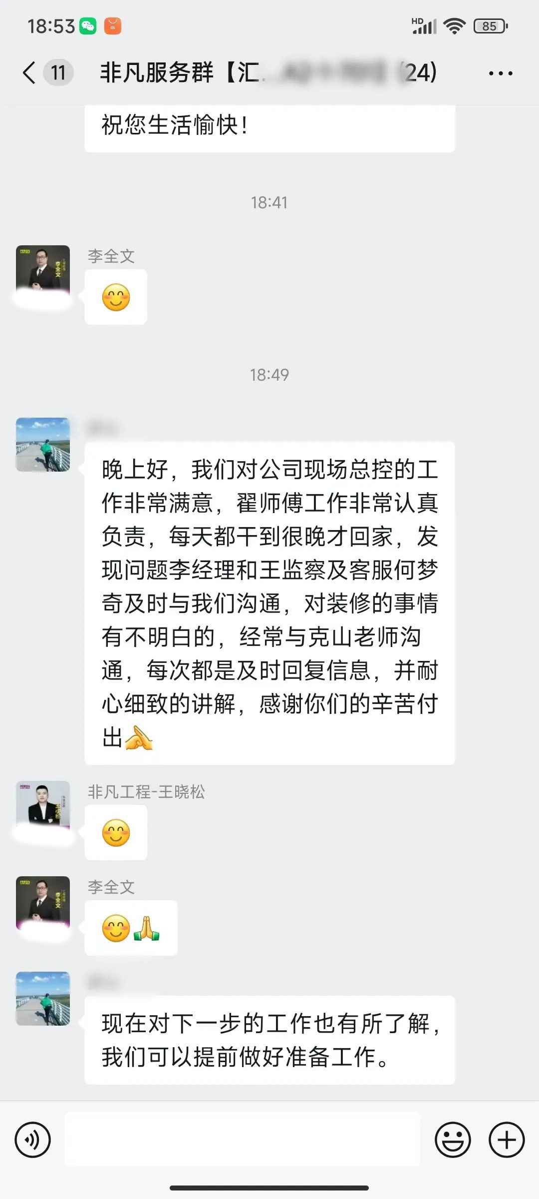 业主的每一句话都是对我们鼓励和肯定