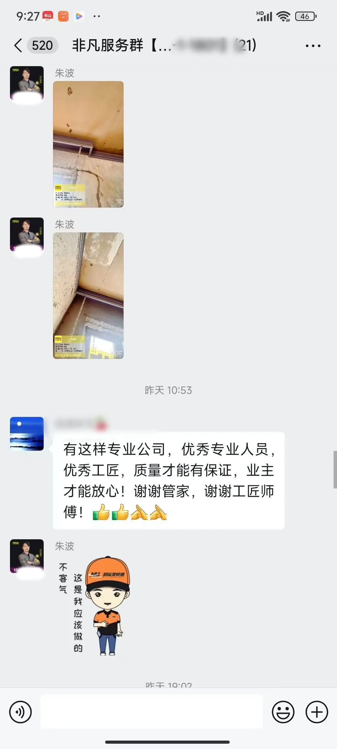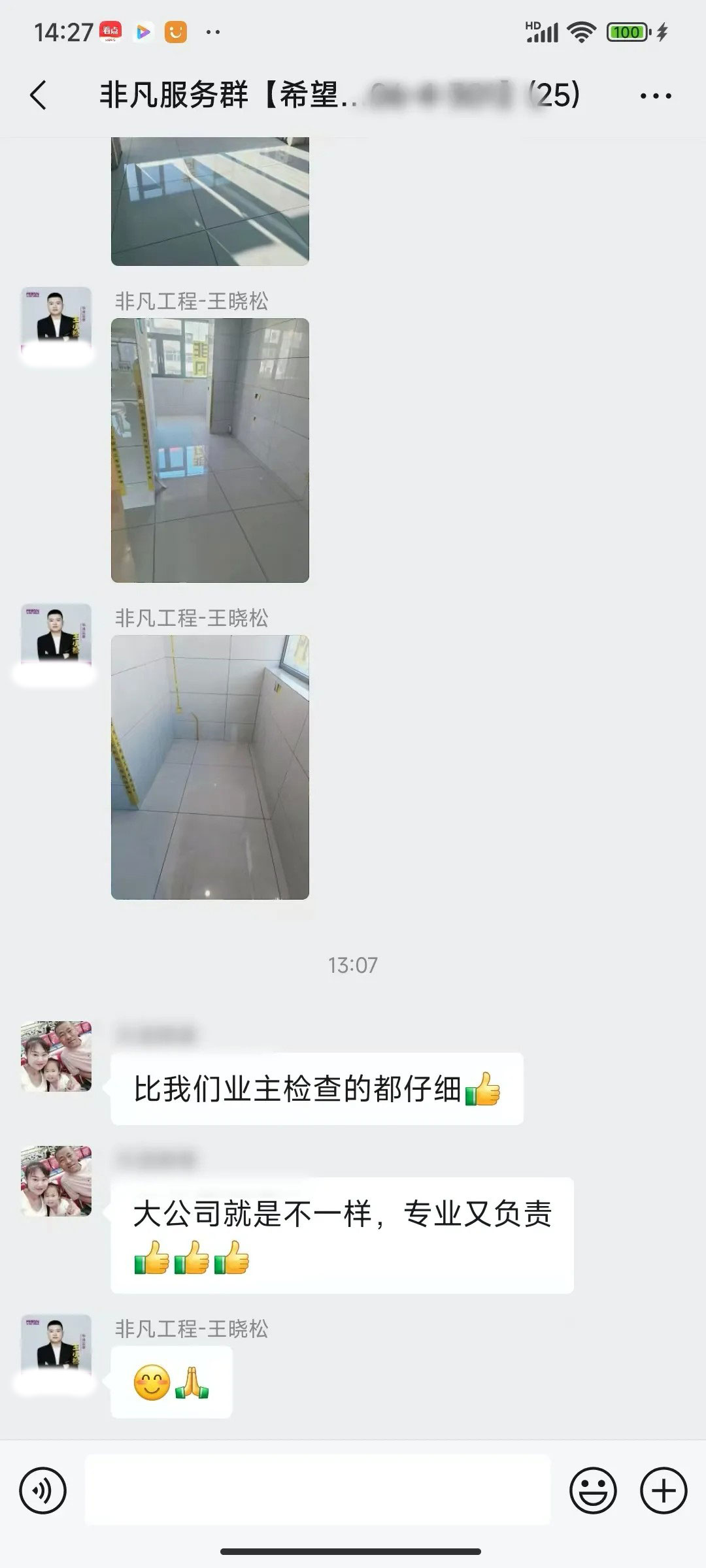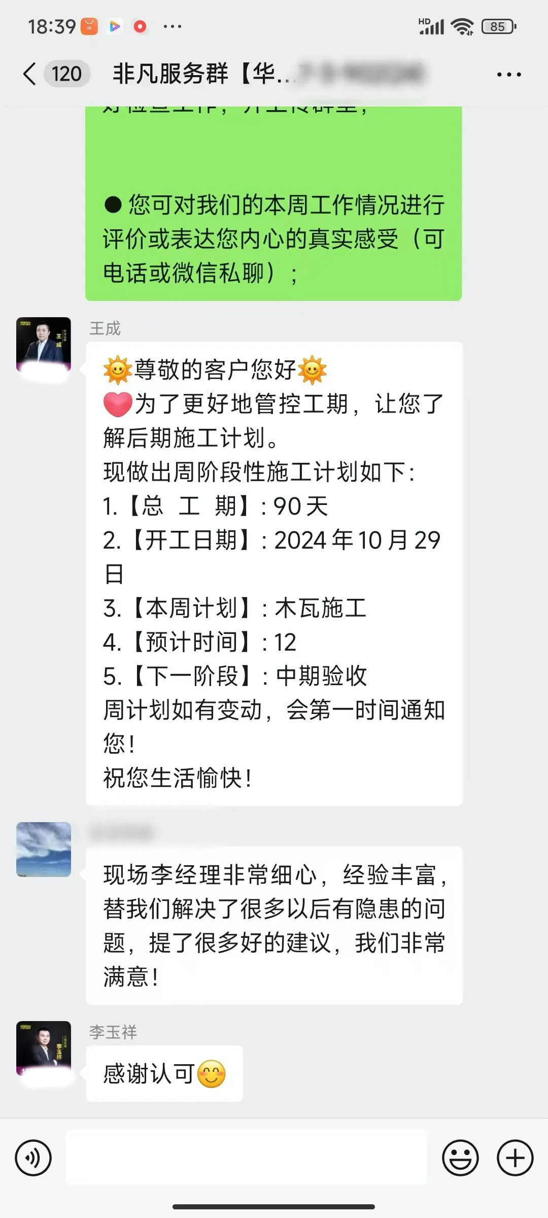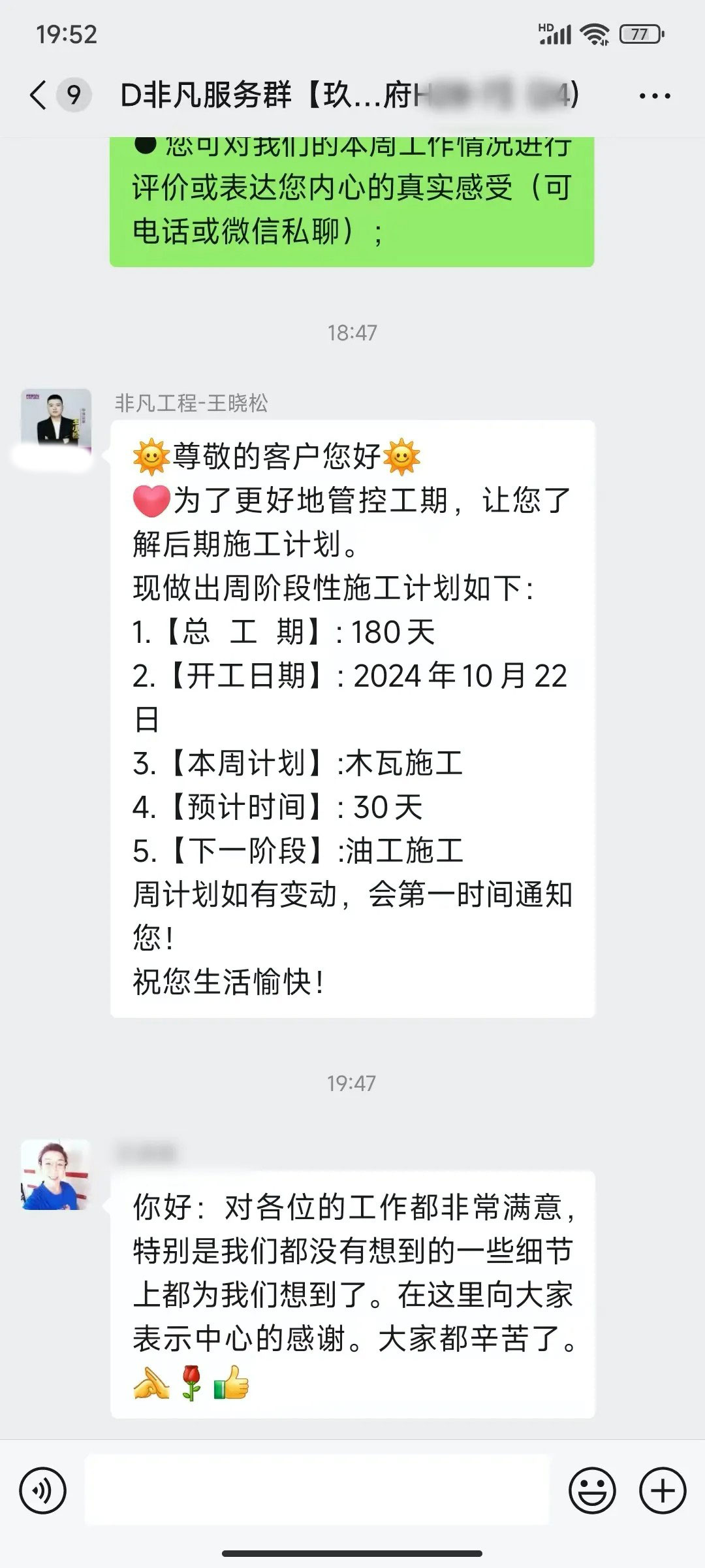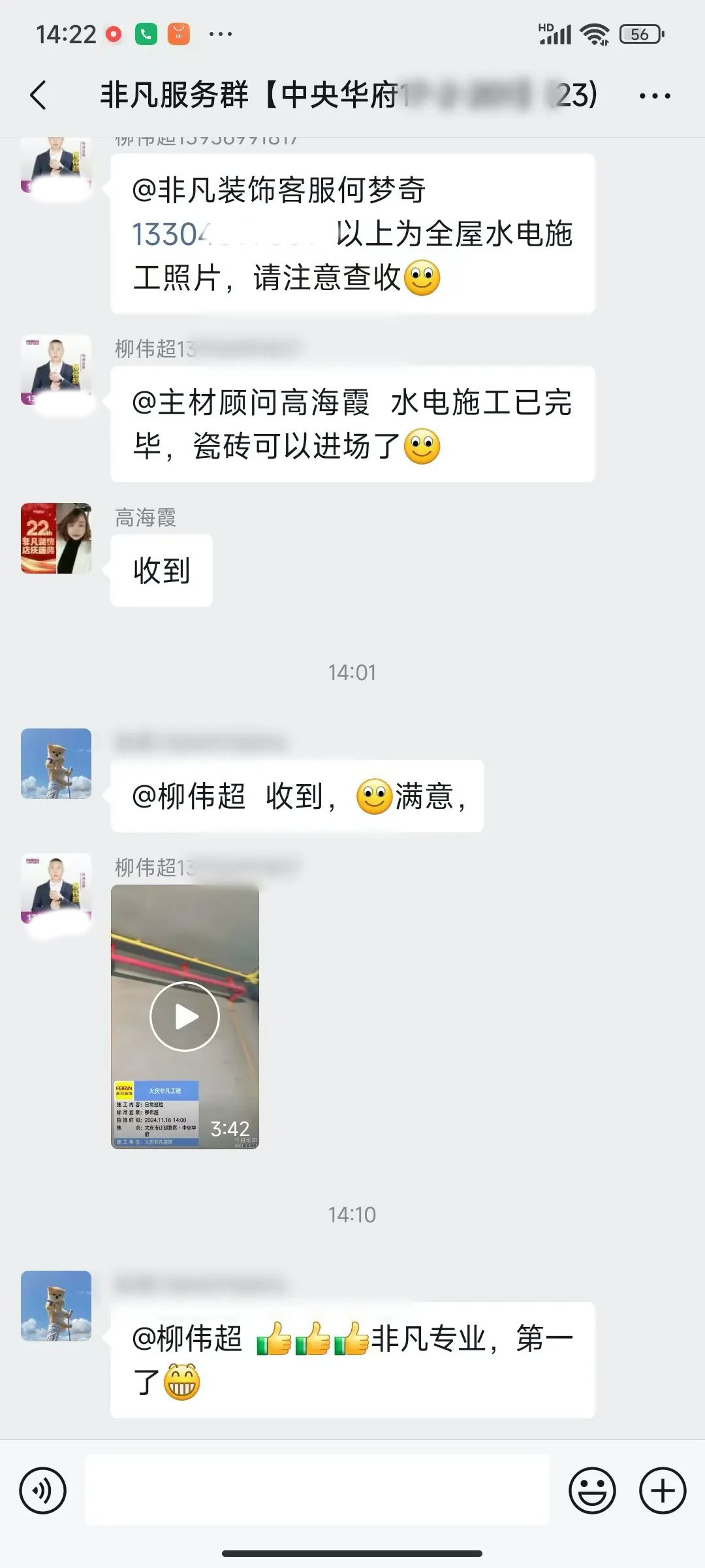 业主的每一句话都是对我们鼓励和肯定