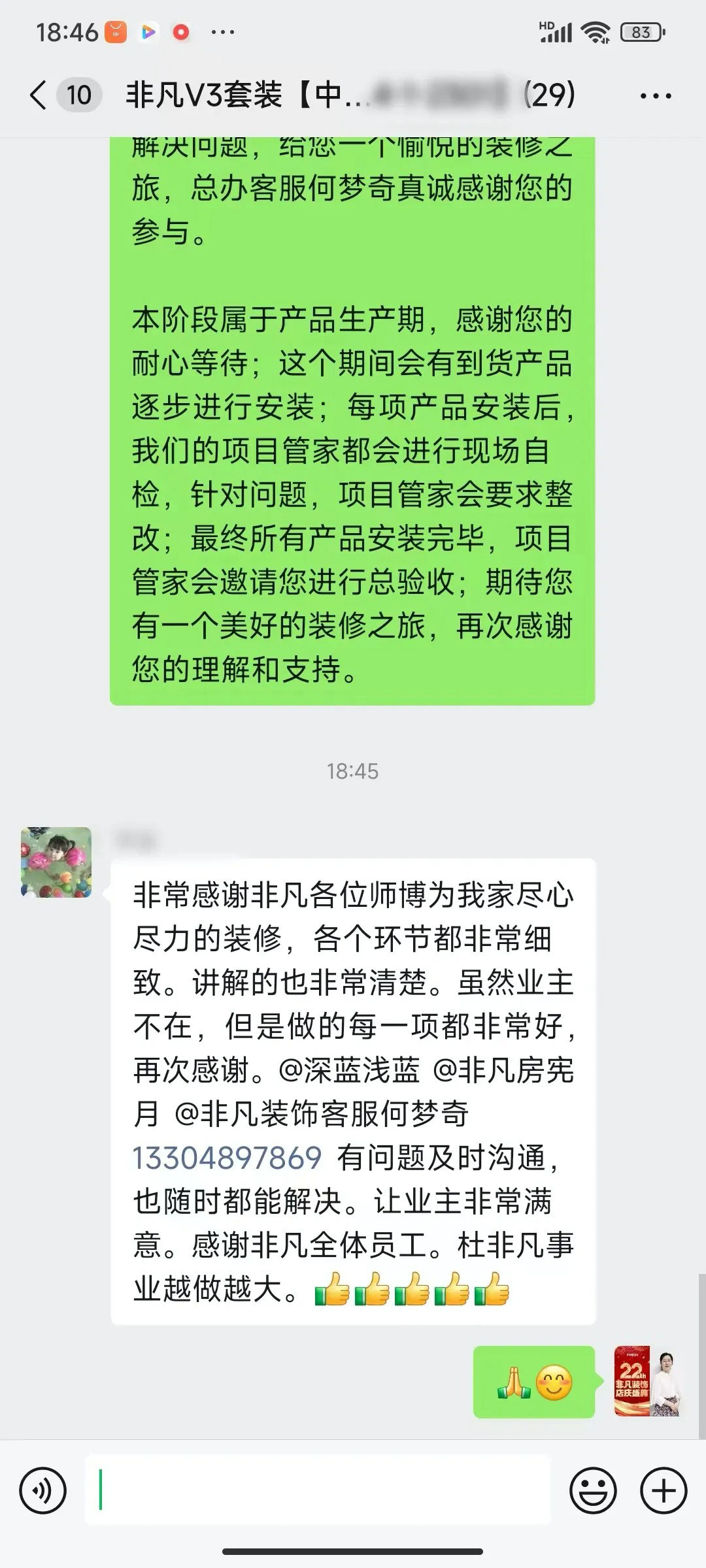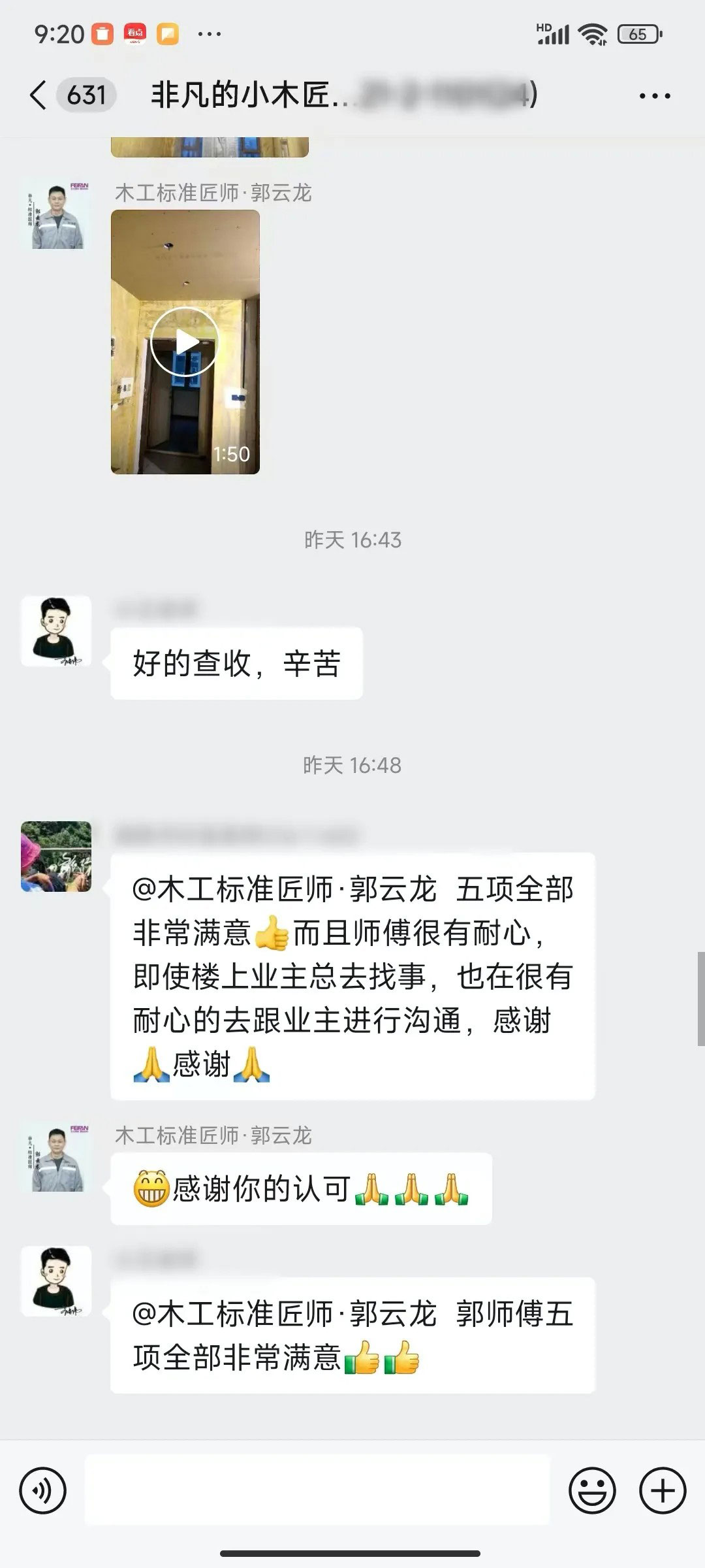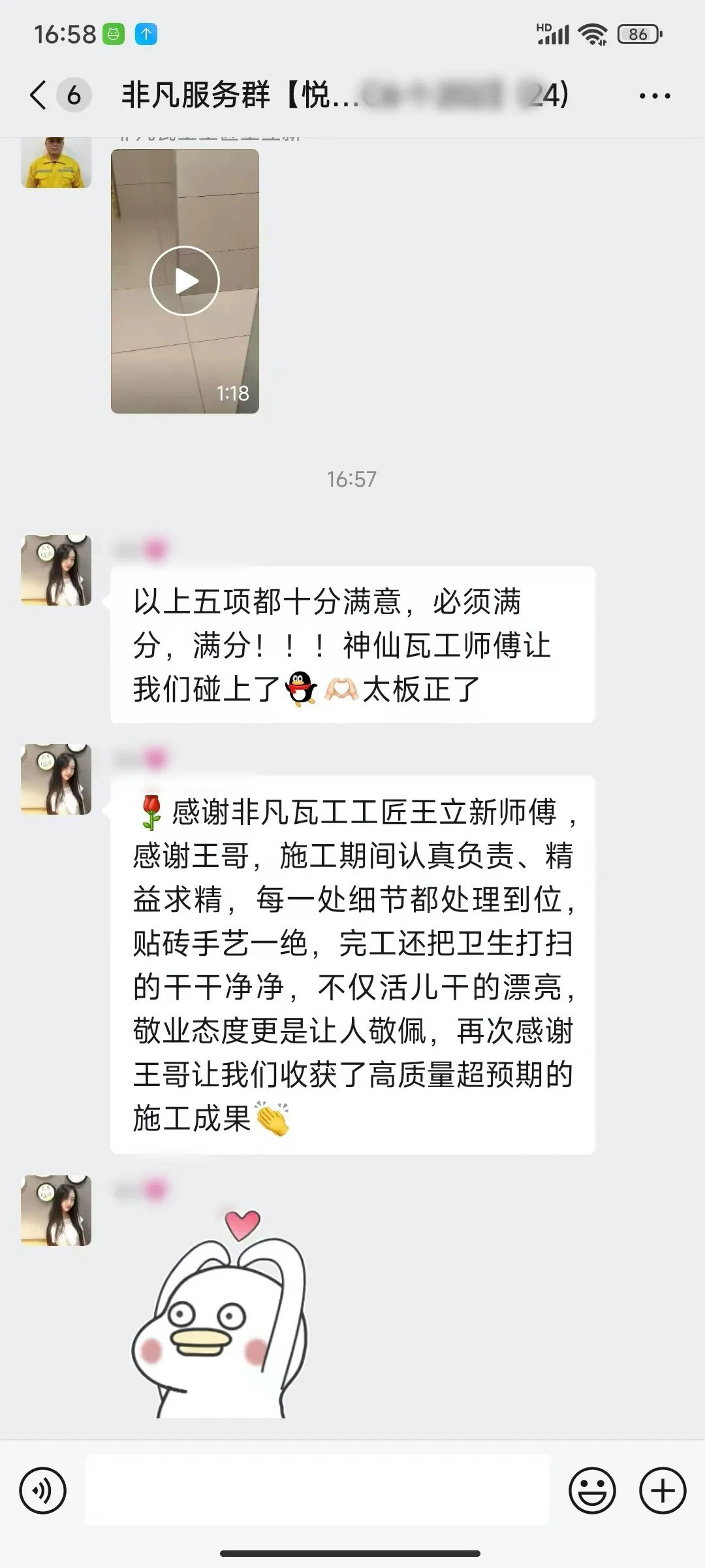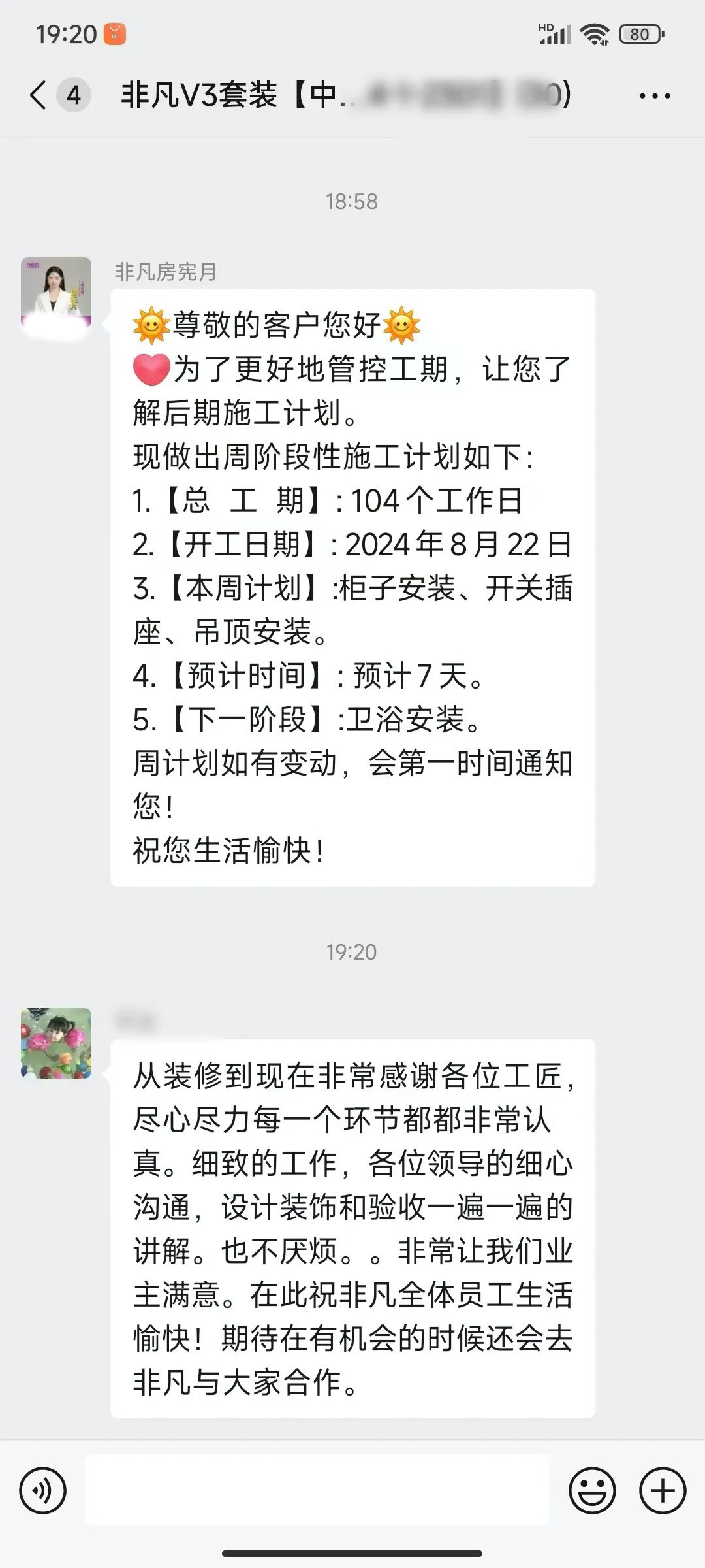 业主的每一句话都是对我们鼓励和肯定