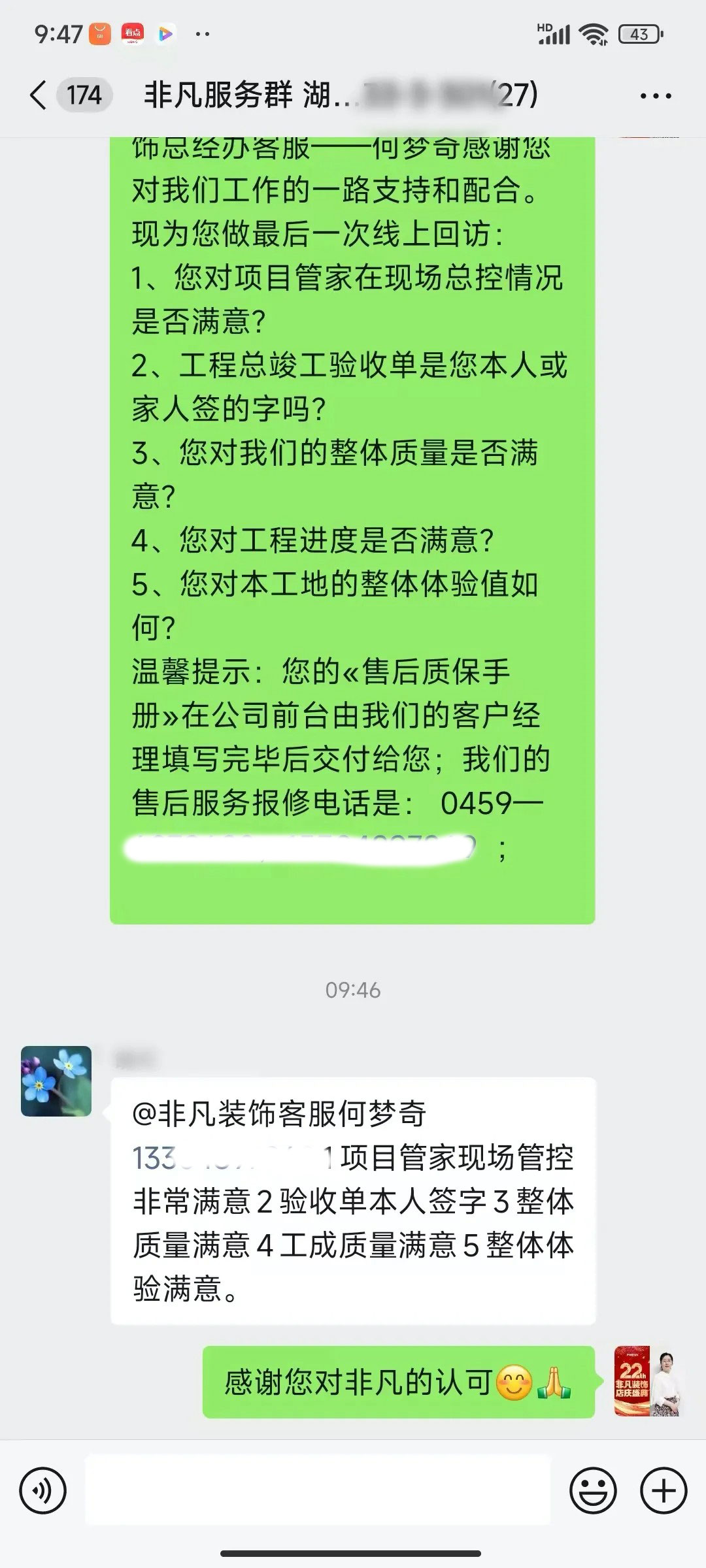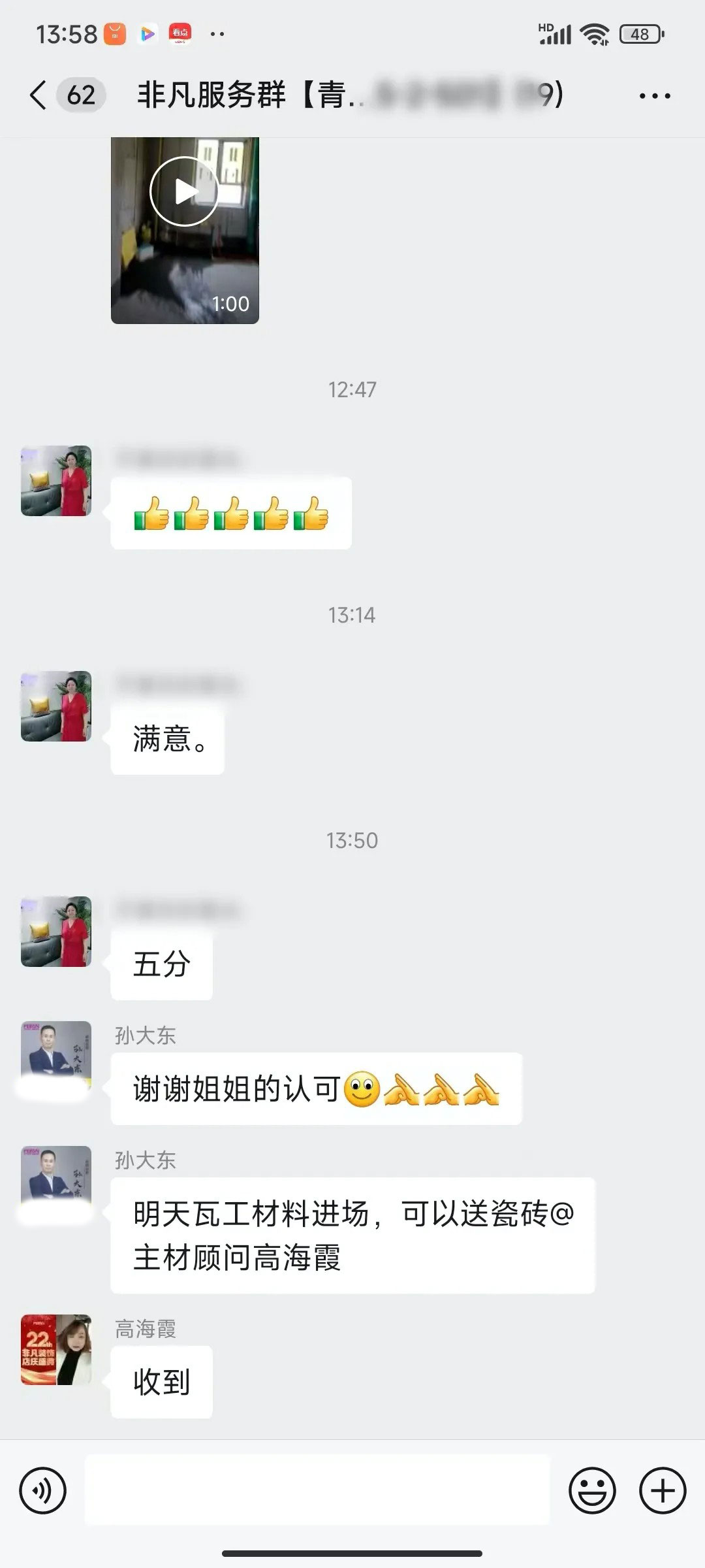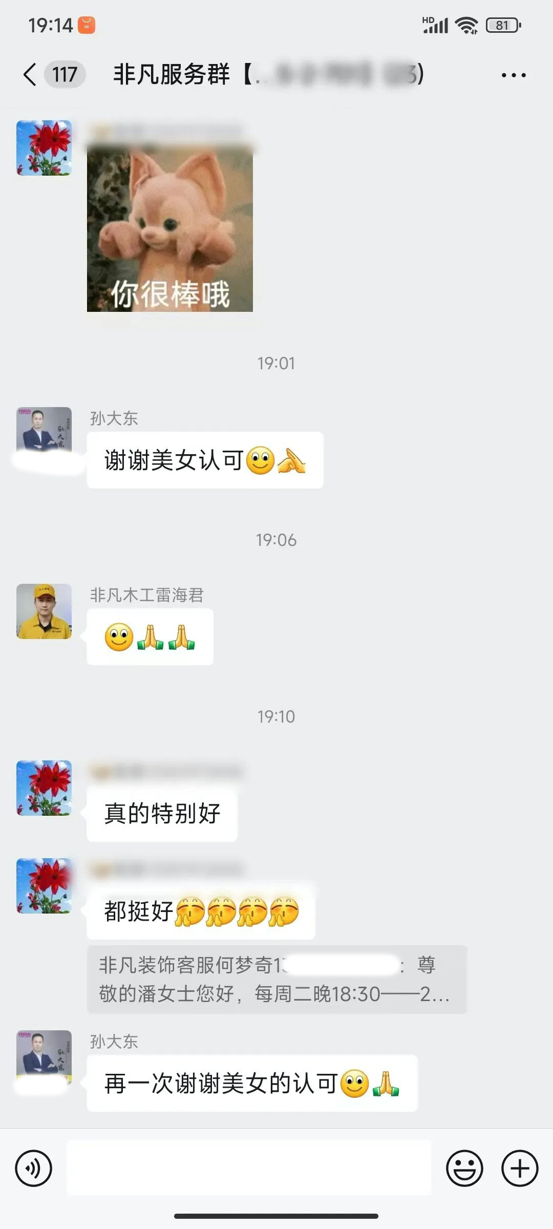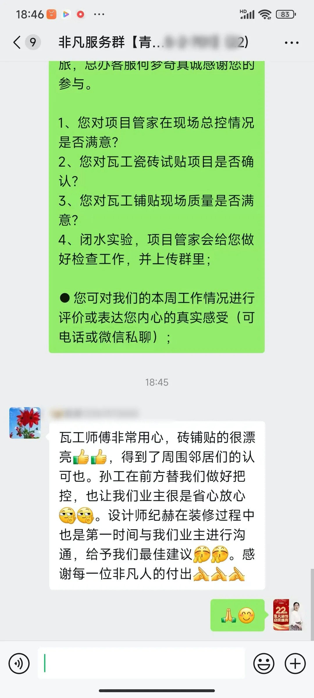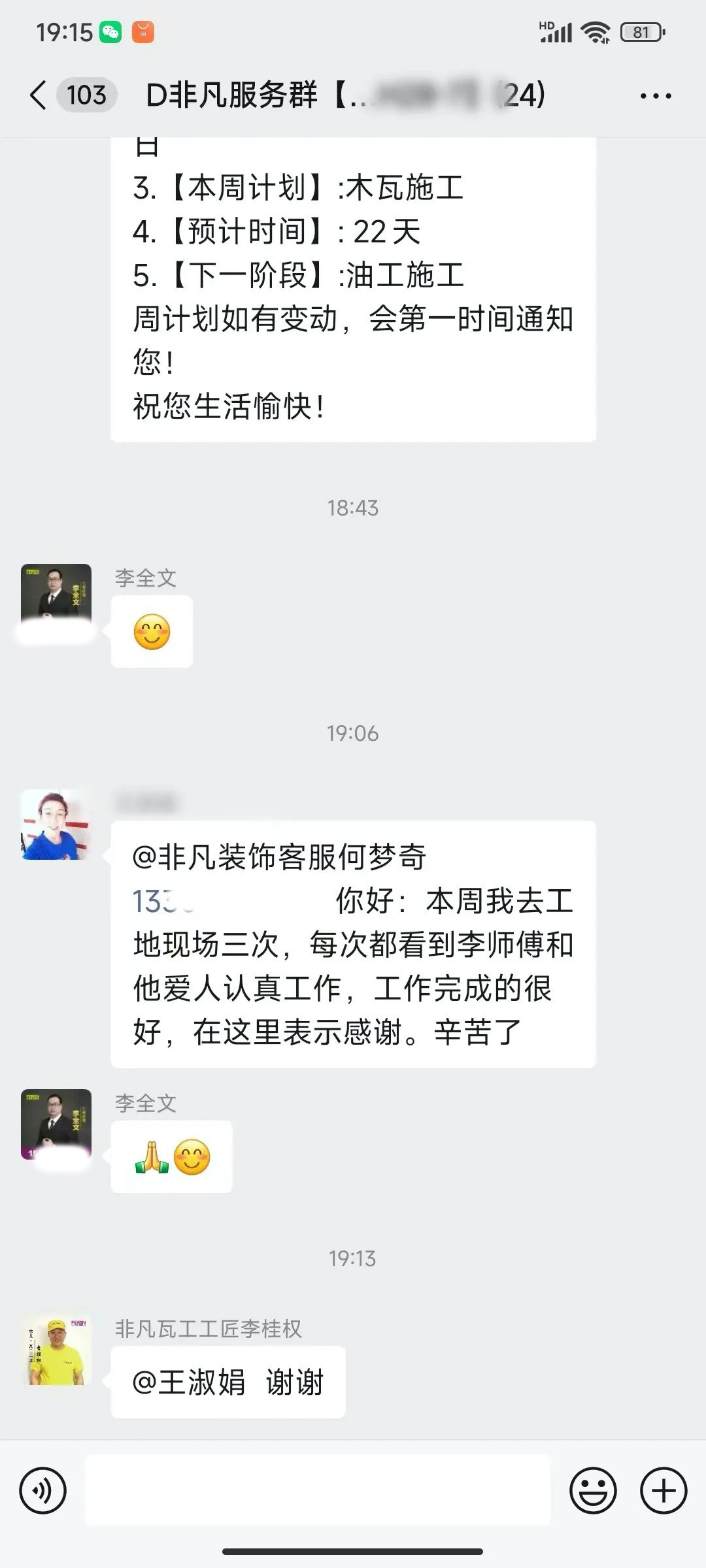 业主的每一句话都是对我们鼓励和肯定