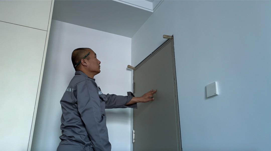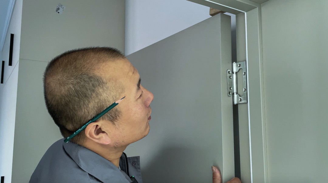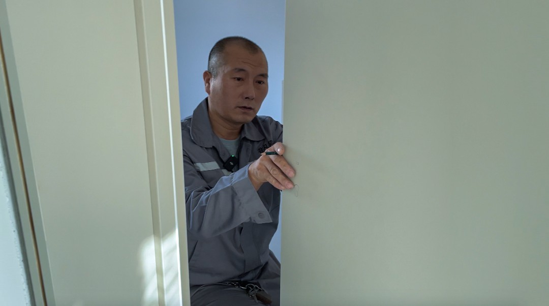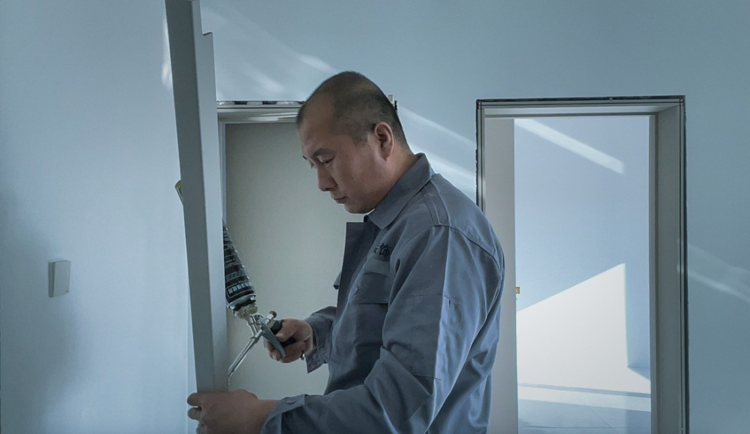 “装门这活儿,看着简单,其实差一点都不行。"他说,很多人以为装门只是固定几颗螺丝,其实背后的工序复杂得很。门的构造、墙体的状态、安装的位置,每一处都需要判断。他常说:"门看着是一块木板,其实它会说话,你得懂它。"