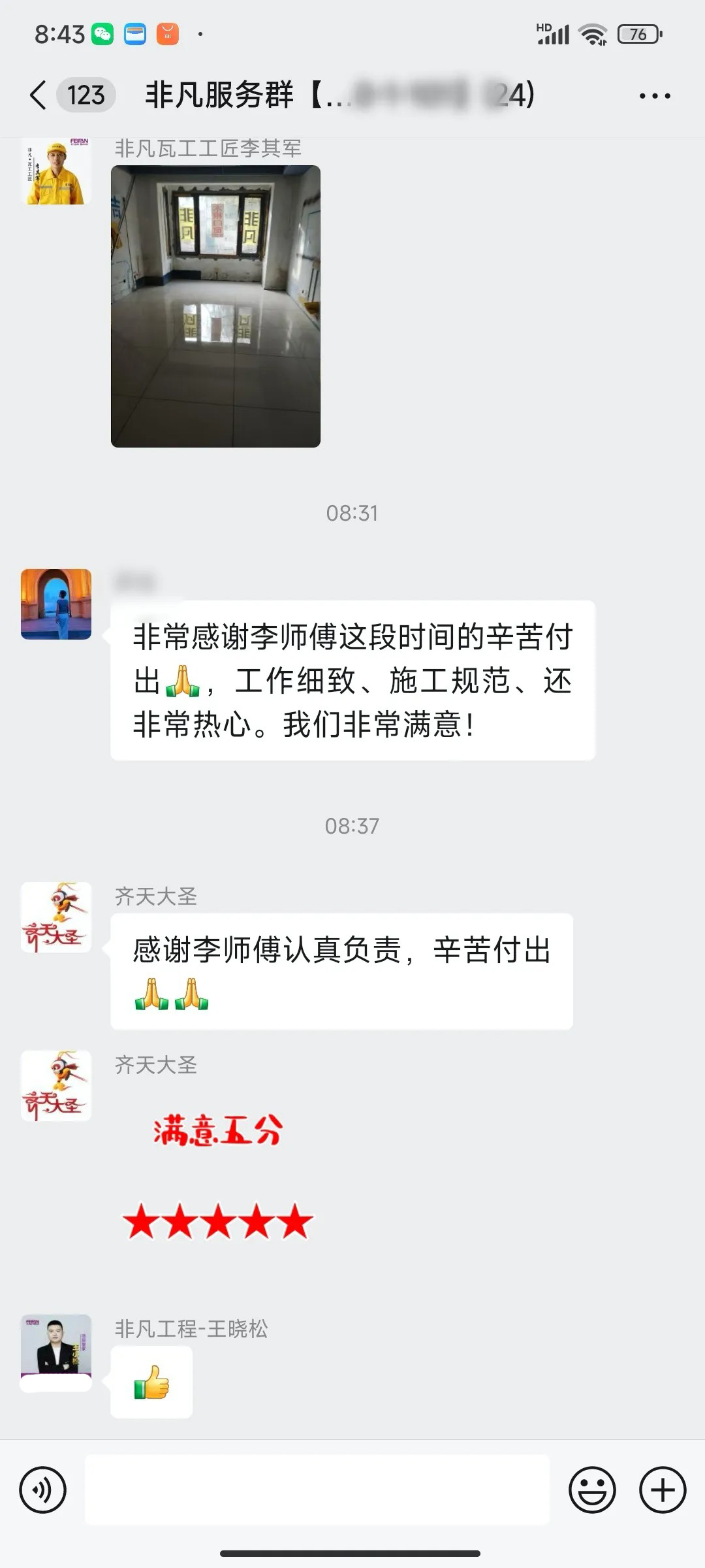 这七百余条好评,汇聚成最动人的声音。它们是对施工团队专业素养的由衷赞许,是对项目管家贴心服务的深深感动,更是对我们整个服务流程顺畅便捷的高度肯定。