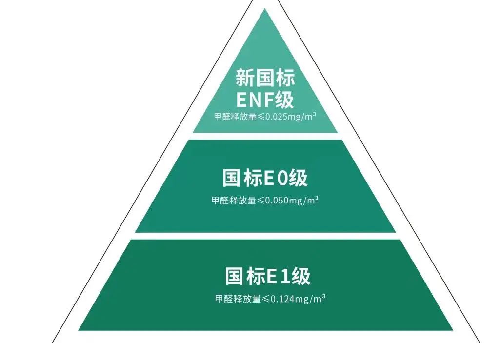 这是全球的环保板材标准,ENF板材在加工的过程中其使用的粘合剂为MDI胶,即MDI生态胶粘剂,它的甲醛含量几乎可以忽略不计。